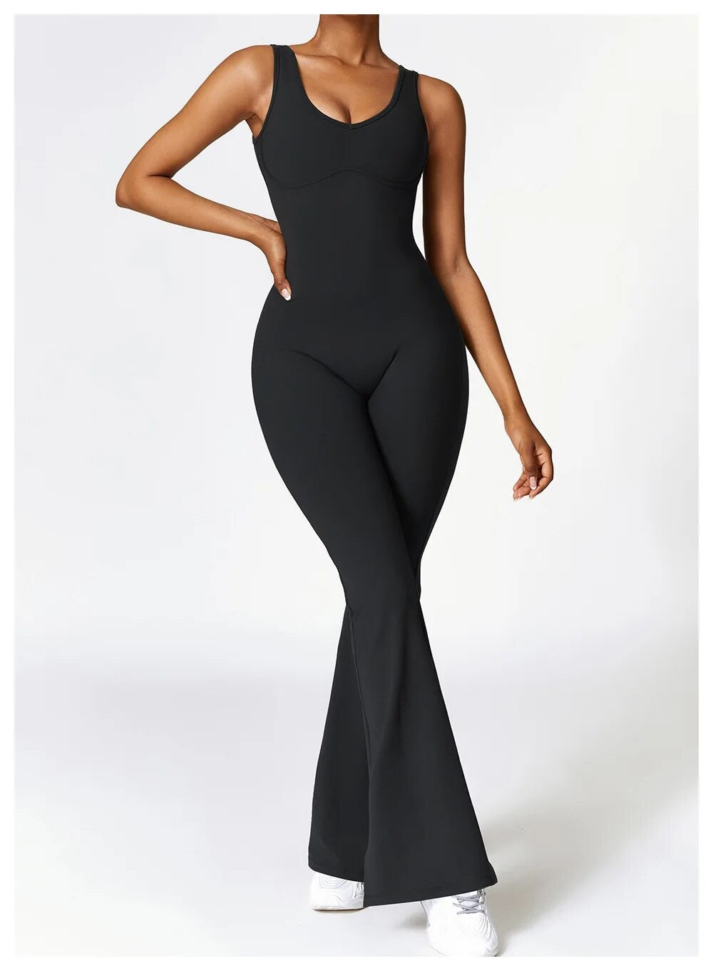 Be an absolute showstopper in this vintage-inspired flared unitard ! Made of ultra-soft jersey fabric, this piece is both versatile and comfy -- making it perfect for a day of errand running or chillin' on the couch. Stun your friends and enemies alike!