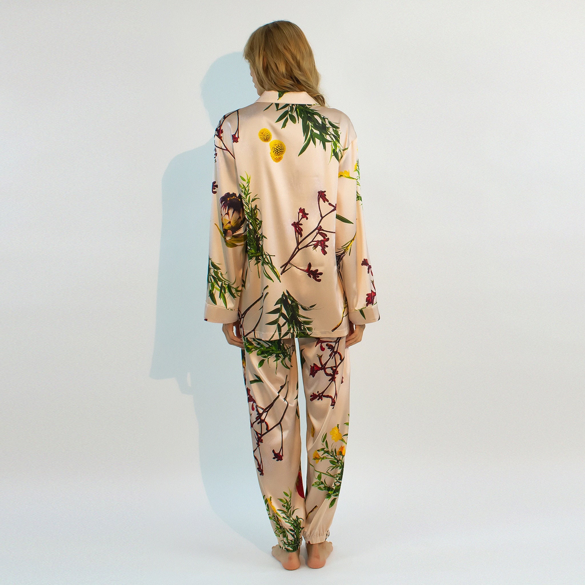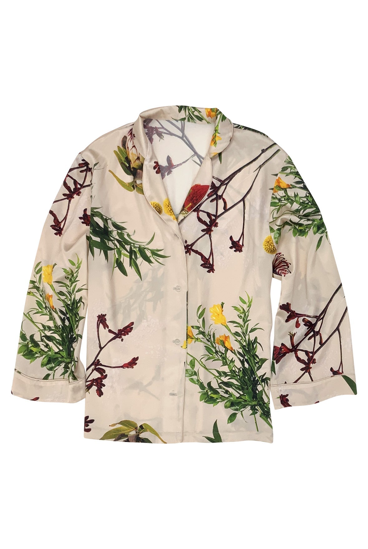 This Flying Flower shirt from NOKAYA is crafted from 19 momme Mulberry silk and features a relaxed straight cut.