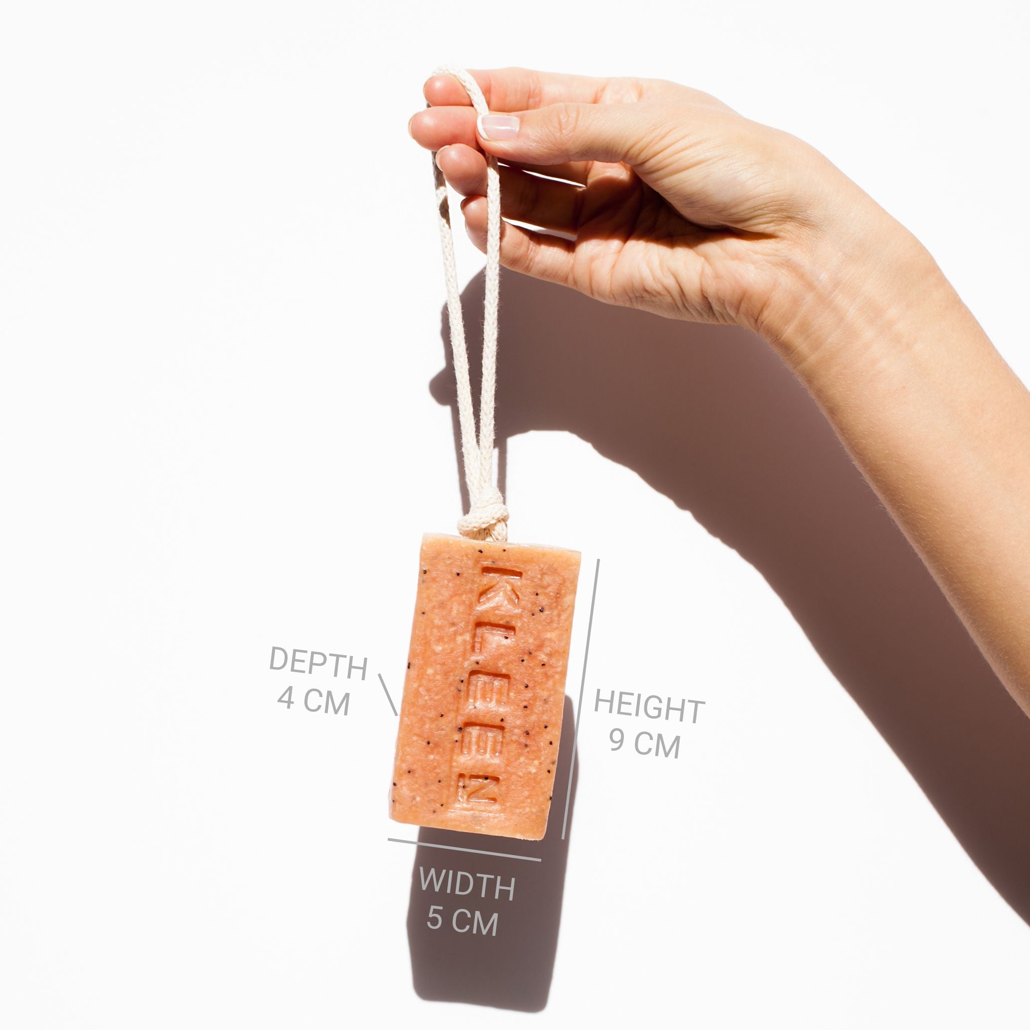 Free from artificial colours, scents or preservatives all KLEENSOAPS are 100% natural and designed to be as clean and green as possible. Each one is centred with a cotton rope to give you a long lasting, waste-free, plastic-free shower experience.