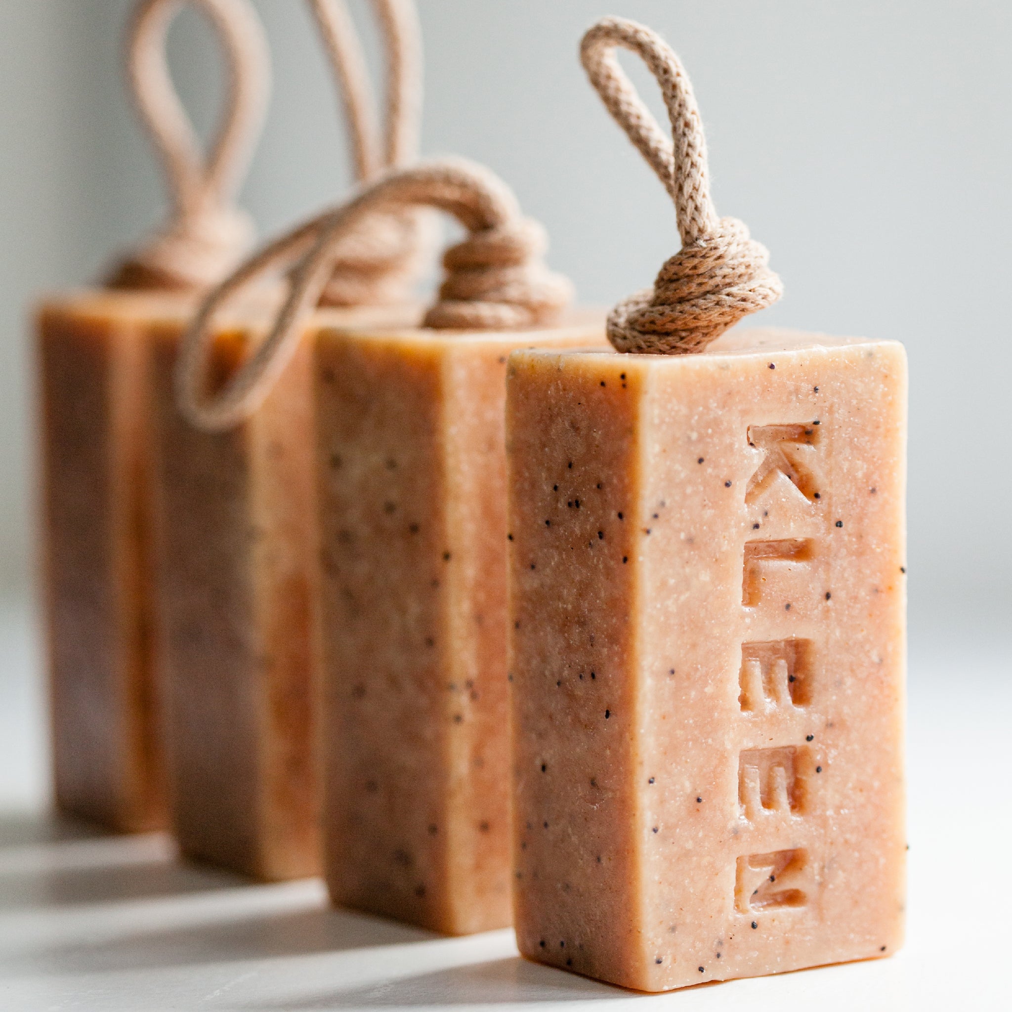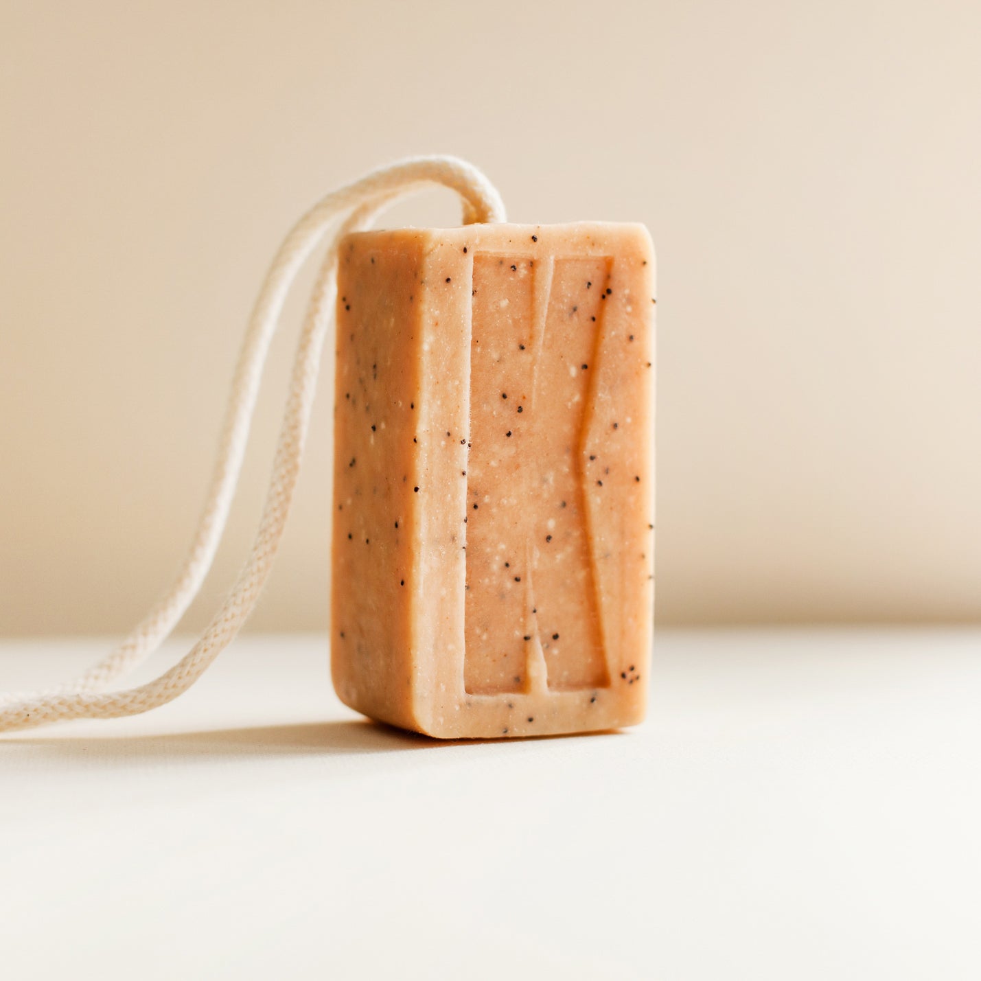 Exfoliating Pumice Soap on a Rope with Eucalyptus and Lemongrass essential Oils. Handmade Vegan Soap. Weight min.160g