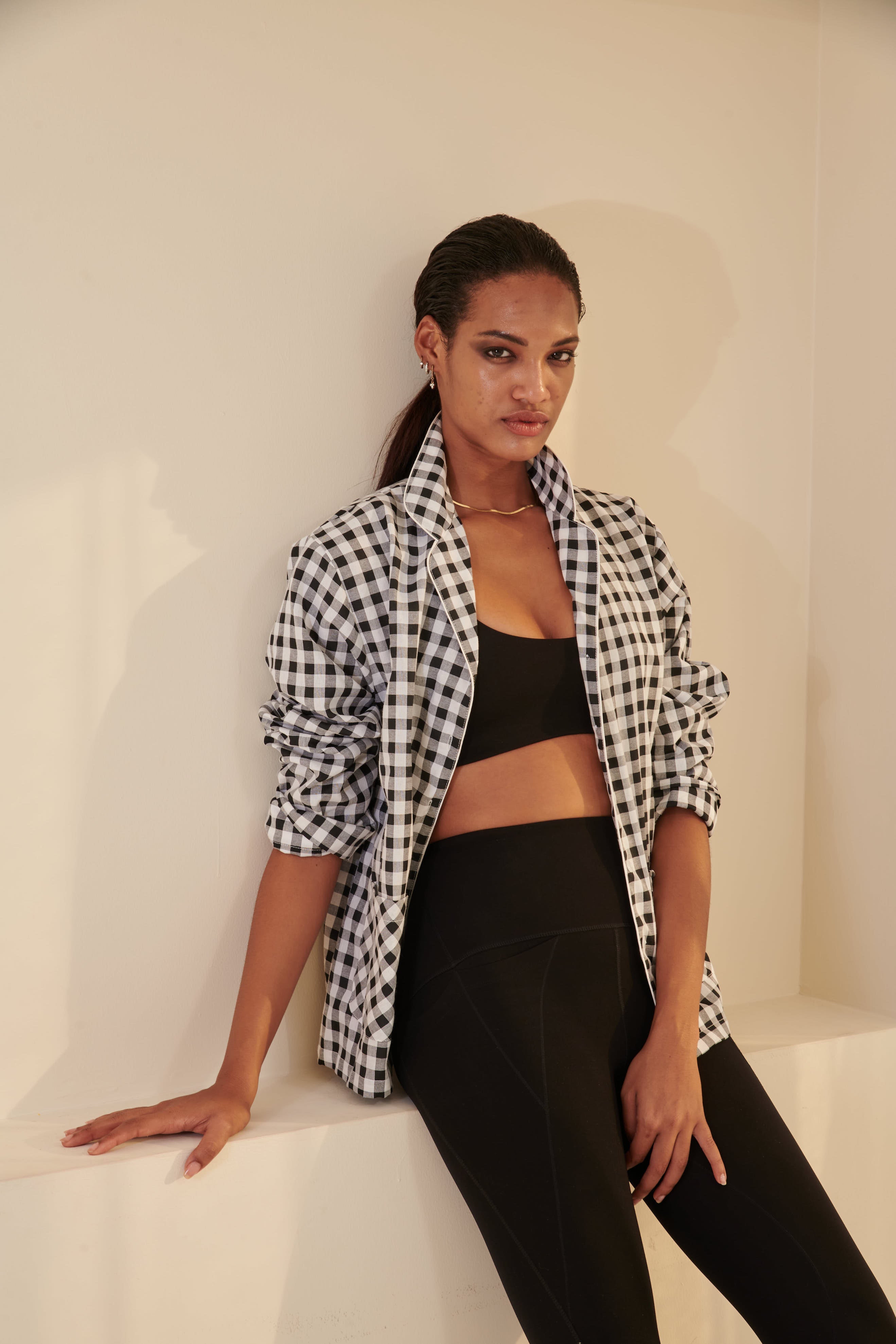 Relaxed and refined, RAIA Leisurewear set is cut from breezy, lightweight fabric with gingham checks. The button-down shirt is neatly piped while the loose-fitting pants have an elasticated waist for comfort and pockets for functional.