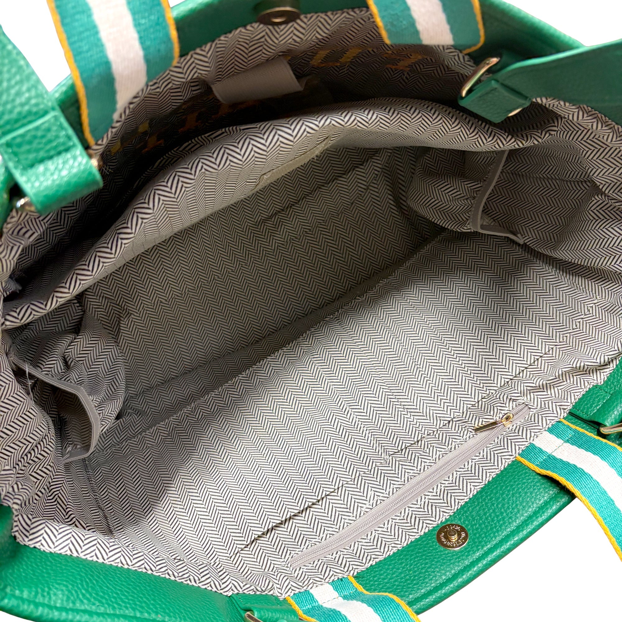 Featuring a clever detachable inner pouch inside the roomy main compartments, laptop padded compartment, drink and pen compartment. Zip compartment and popper close.