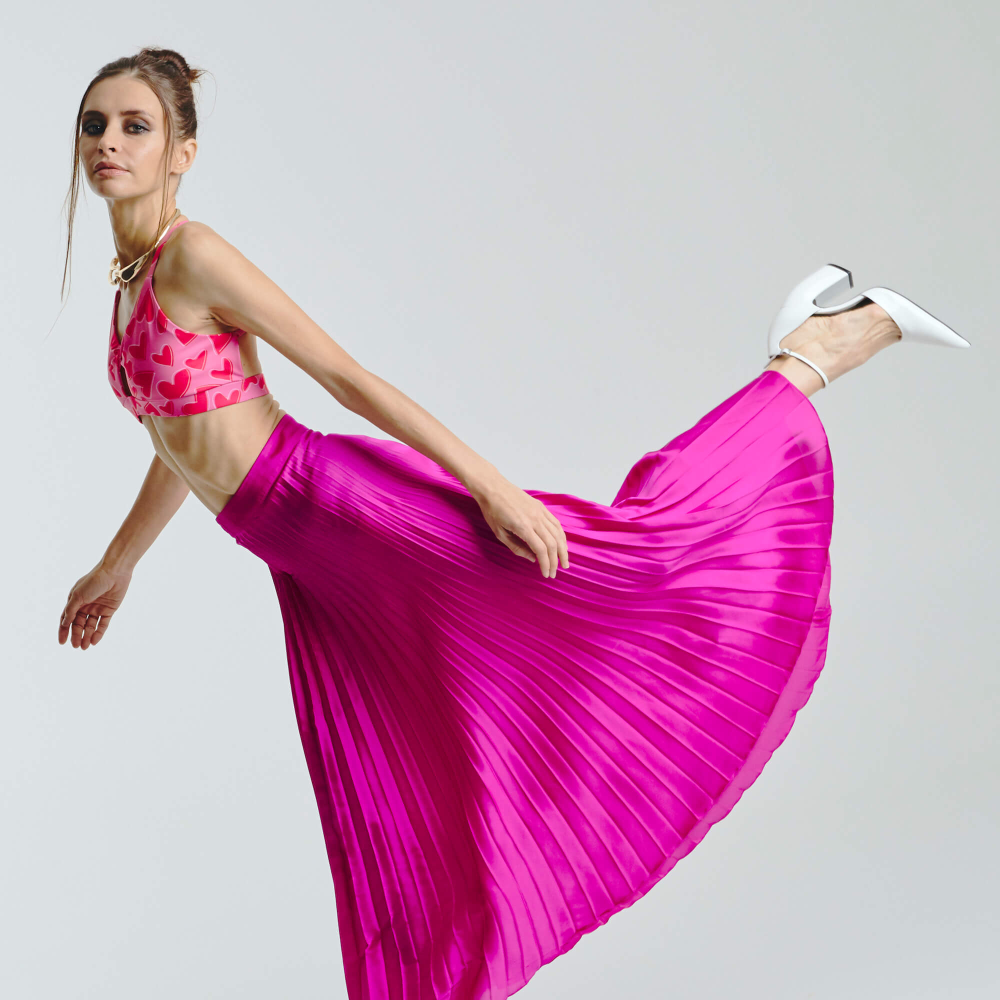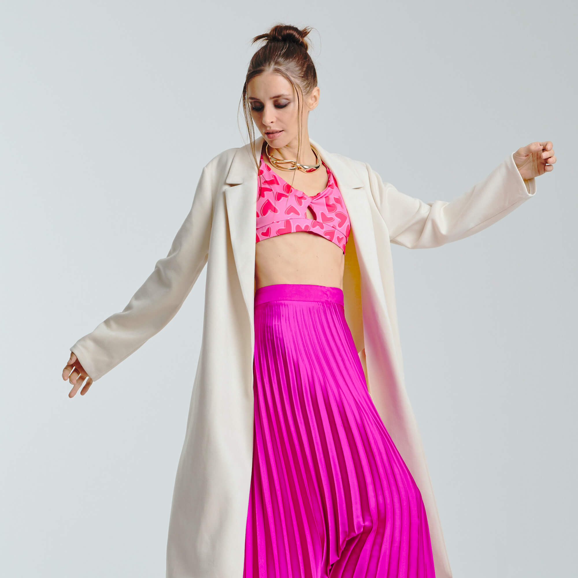 Wrap yourself in happy love with our dancing hearts print. The bright pink and bold red put an extra spring in your step as you go out in the world and spread love. Happy hearts abound.
