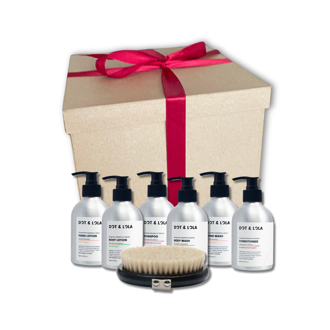 Transform your daily routine with our Head to Toe Ultimate Body Care lineup! This all-in-one set features six products designed to nourish and protect your skin and hair from head to toe. Suitable for all skin types, this collection will leave you feeling refreshed, rejuvenated, and ready to take on the day. Includes Dry Body Brush.