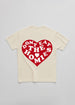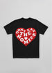 Our unisex heart tee features a large Dont Eat the Homies red heart graphic on the back and a smaller version printed on the chest.