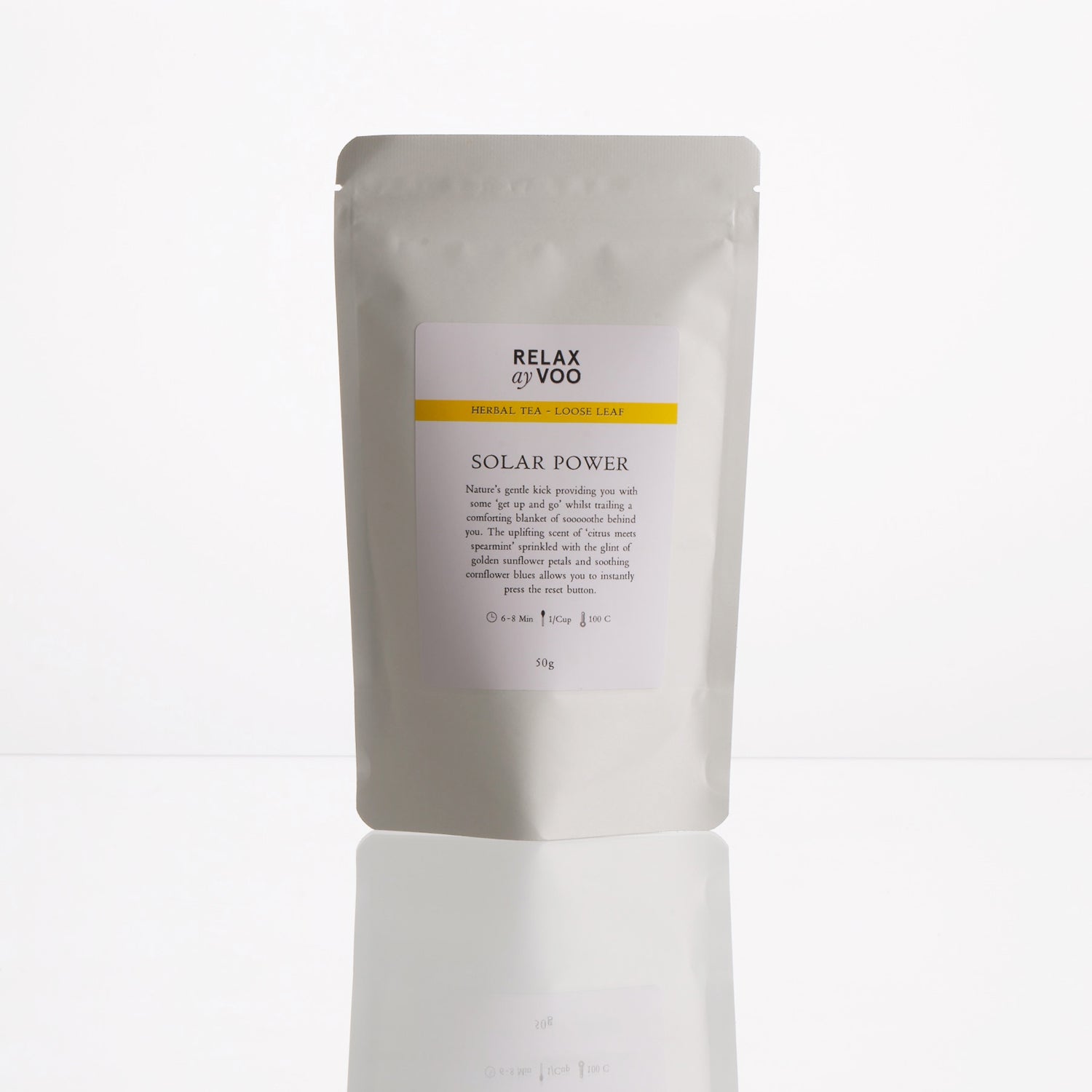 Green Mate, Lemongrass, Spearmint, Ginseng, Gingko, Nettle, Cornflower, Calendula and Sunflower petals.