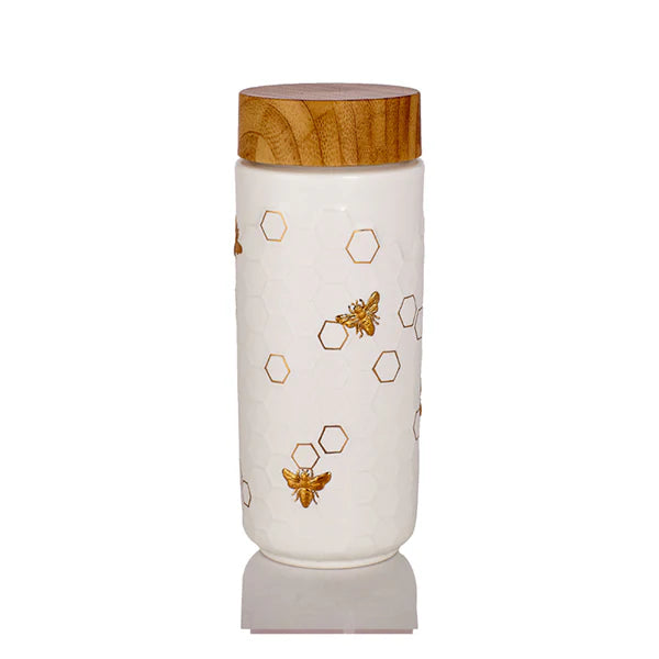 Indulge in the pure and freshness of your drink with the ACERA Honey Bee Ceramic Travel Mug, boasting a tourmaline-lined inside and a delicate, hand-crafted, and hand-painted Gold Bee and honeycomb pattern. Maintain the heat of your beverage in its double-wall ceramic build for up to 90 minutes. The look is given a touch of extravagance with an ABS Tritan bamboo lid. Every ACERA tumbler is designed with intricate designs and top-notch engraving, so you can savour the simple luxury of drinking water. Refined taste, sleek style.