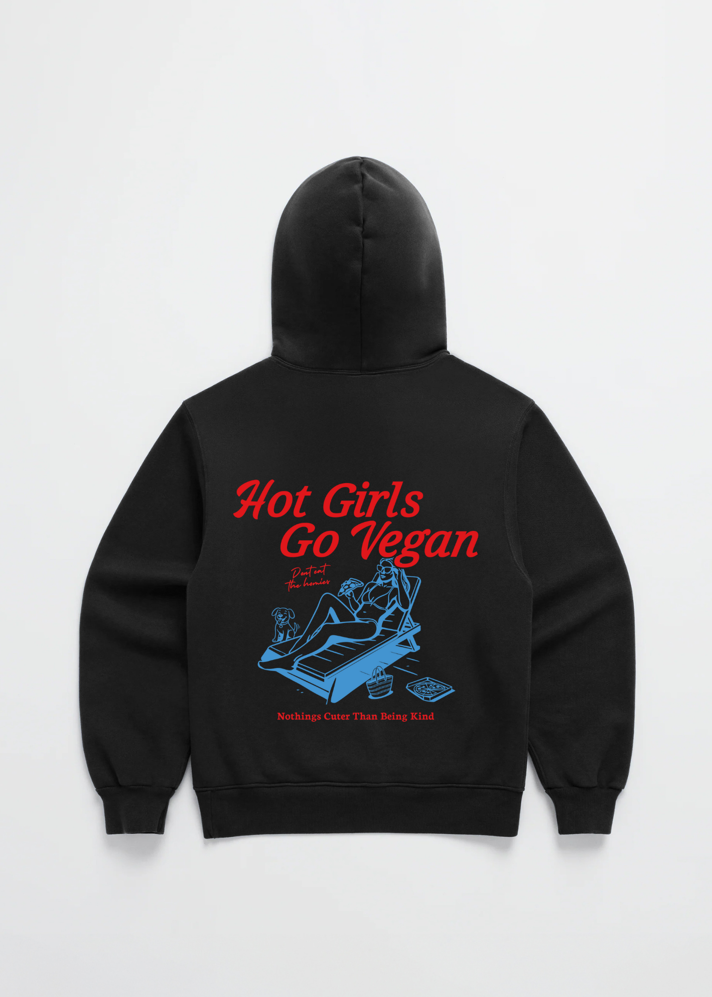 This hoodie features our new Hot Girls Go Vegan Graphic across the back. The unisex cut and soft brushed fleece make it perfect for everyday wear, combining comfort and attitude.