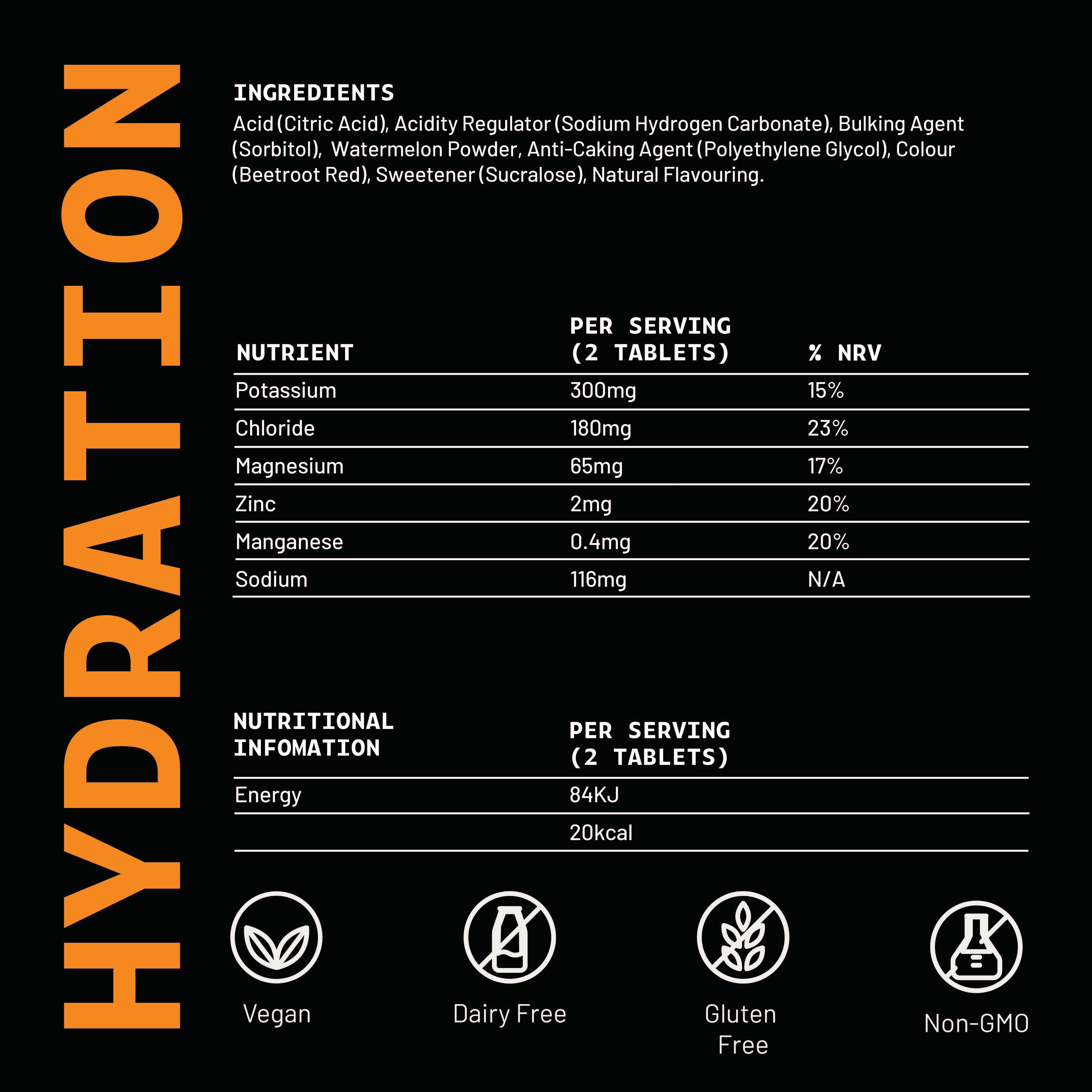 Our best-tasting hydration tablets are a carefully formulated nutritional complex of electrolytes and minerals designed to support optimum hydration and muscle function.