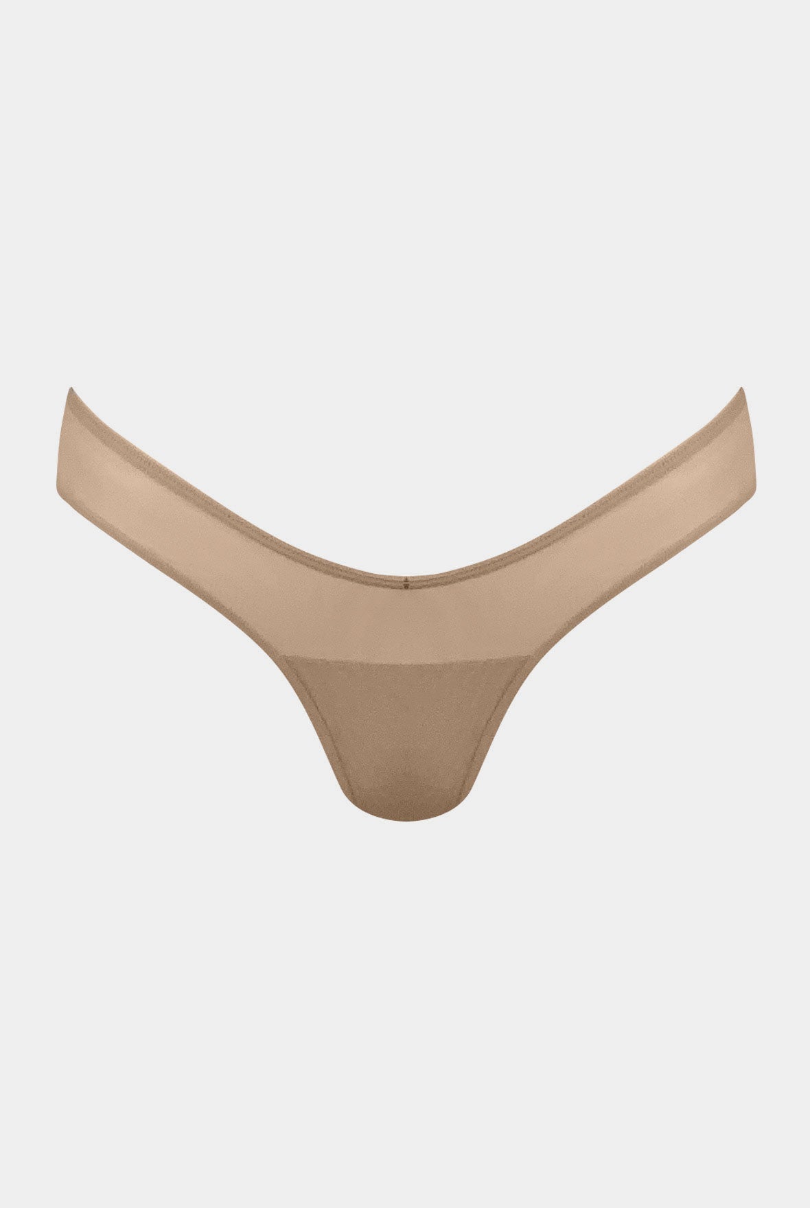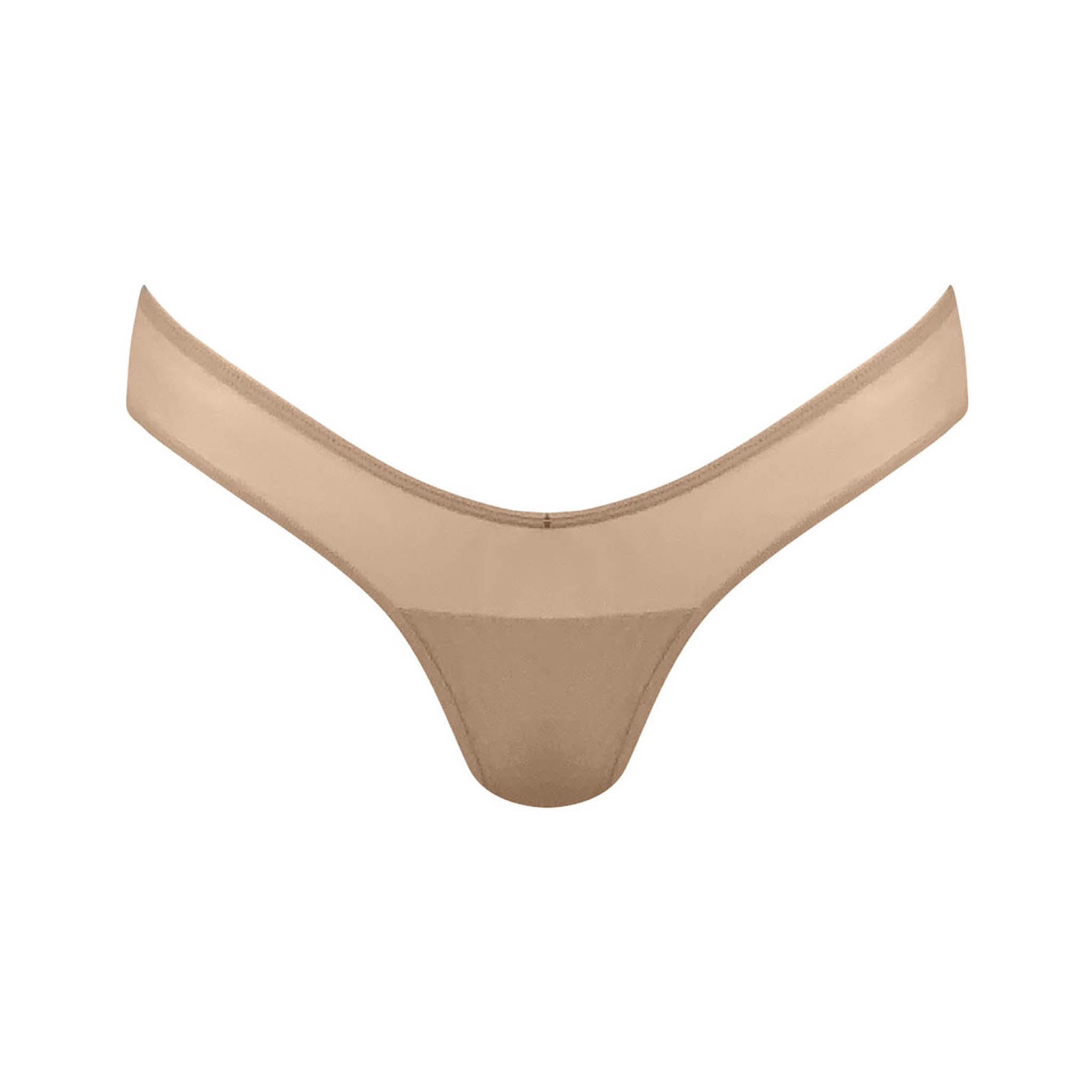 A comfortable and chic V-thong is designed from soft Italian tulle. Cotton gusset gives extra comfort. The unique design of the v-thong makes it almost invisible under the clothing. The iconic colour - Soft Sand - has become a favourite for everyday use.