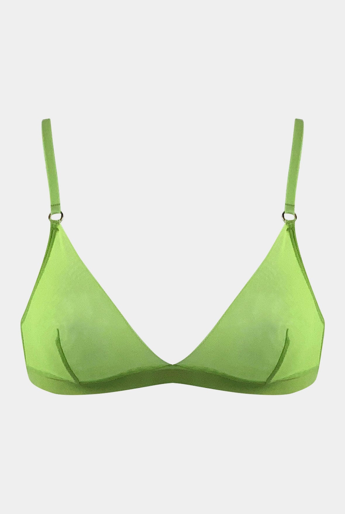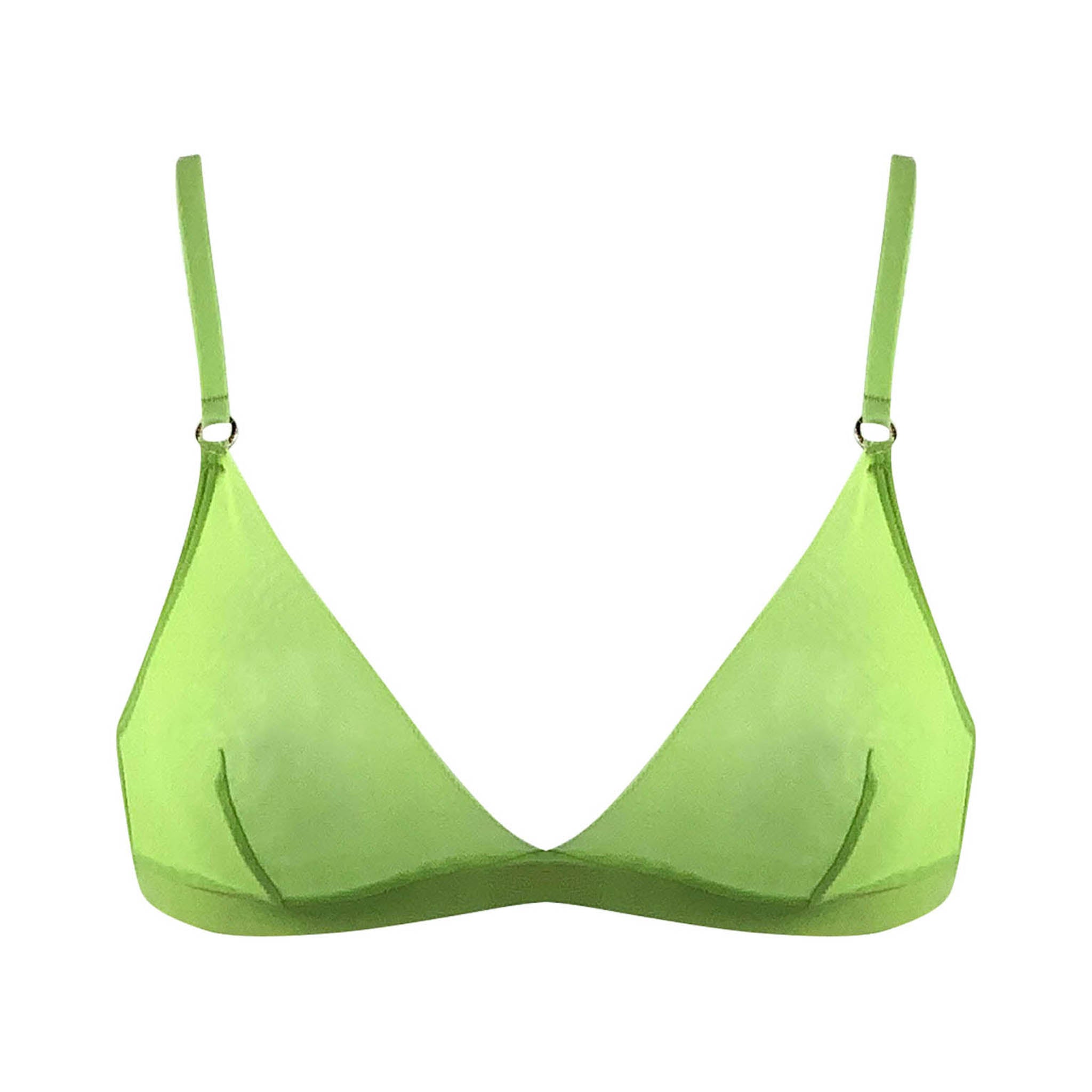 A super comfortable iconic soft triangle bra is designed from soft Italian tulle, stretch fabric that won’t cut into your skin and has fully adjustable shoulder straps. A soft-cup triangle is too good to hide away under clothes - it would look particularly chic under a sheer shirt. Trendy green color creates a high vibe. Cool. Minimalistic. Irreplaceable! For superior look match it with the v-thong or the bikini.