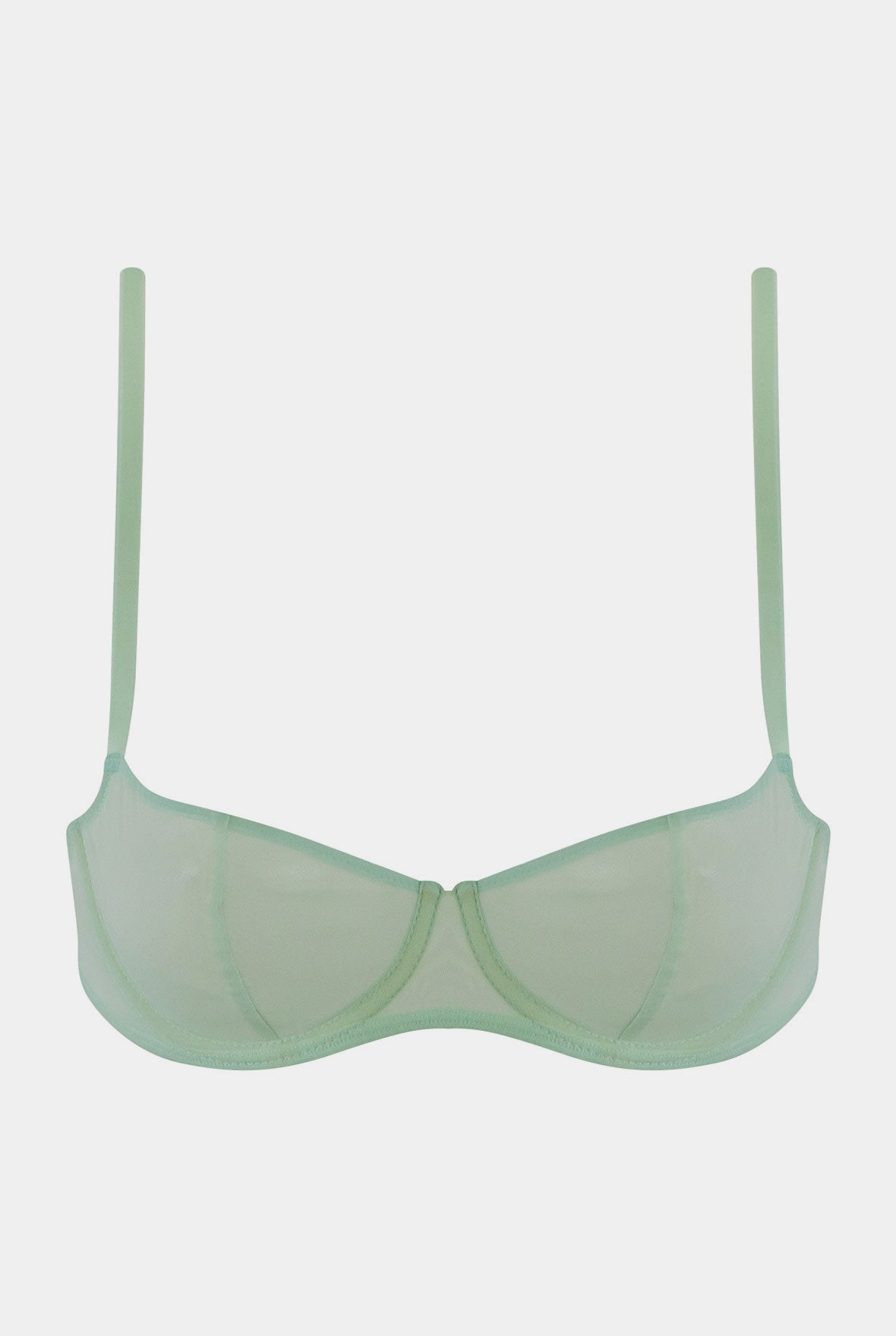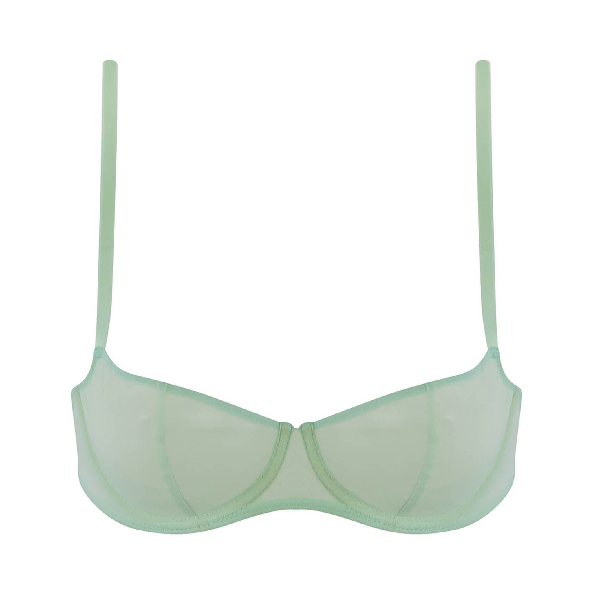 The I.D.Line iconic soft balcony bra is made from lightweight Italian tulle that's lightweight and invisible underneath tops and dresses. This must-have bra has adjustable straps, gold rings and a vertical seam, creating an irresistible neckline and a feminine look. The trendy colour of the season - Mint Creme - evokes an instant emotional response, Cool.