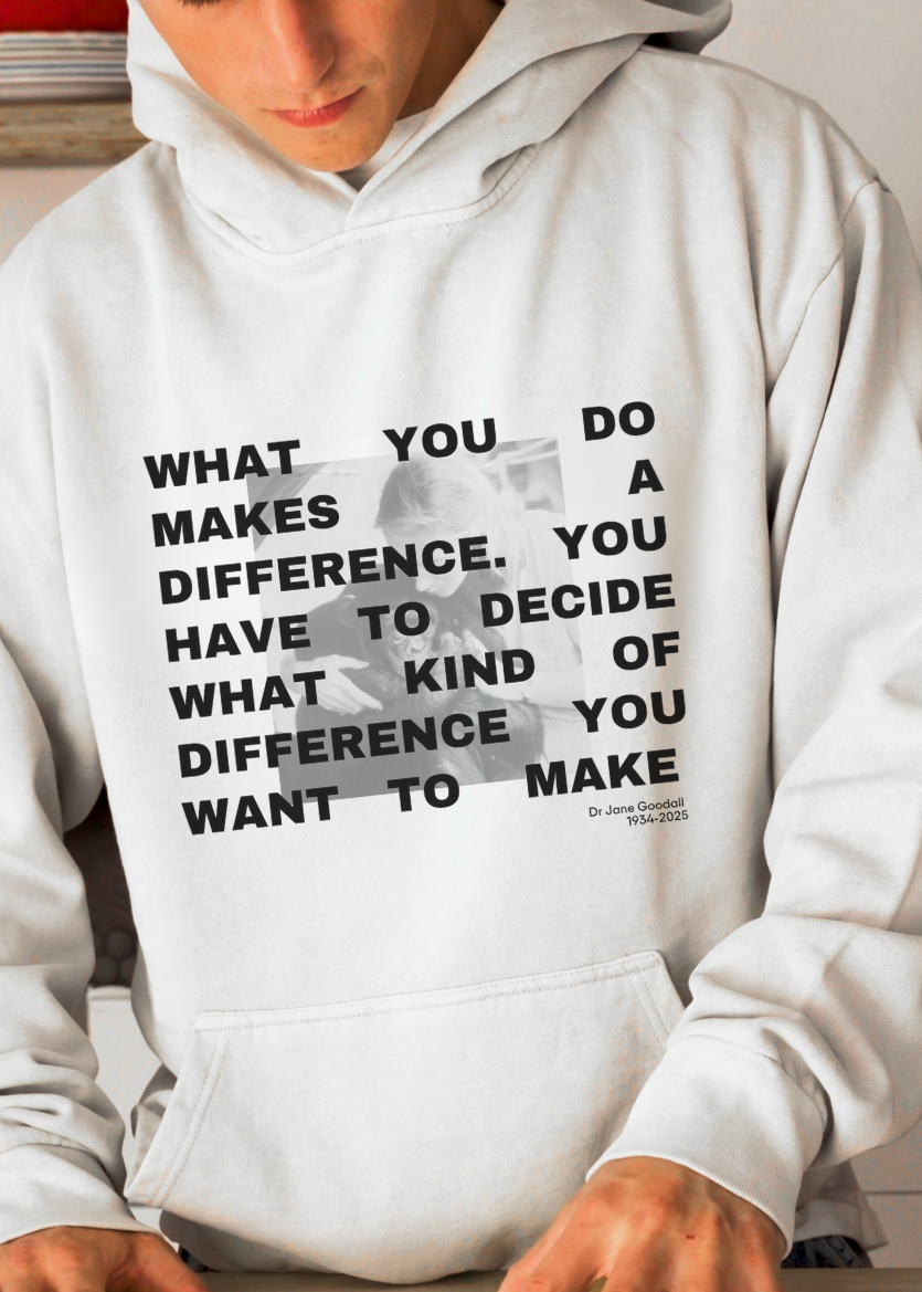 100% of proceeds from this hoodie will be donated to the Jane Goodall Institute, supporting their mission to protect wildlife and inspire action for a better world.