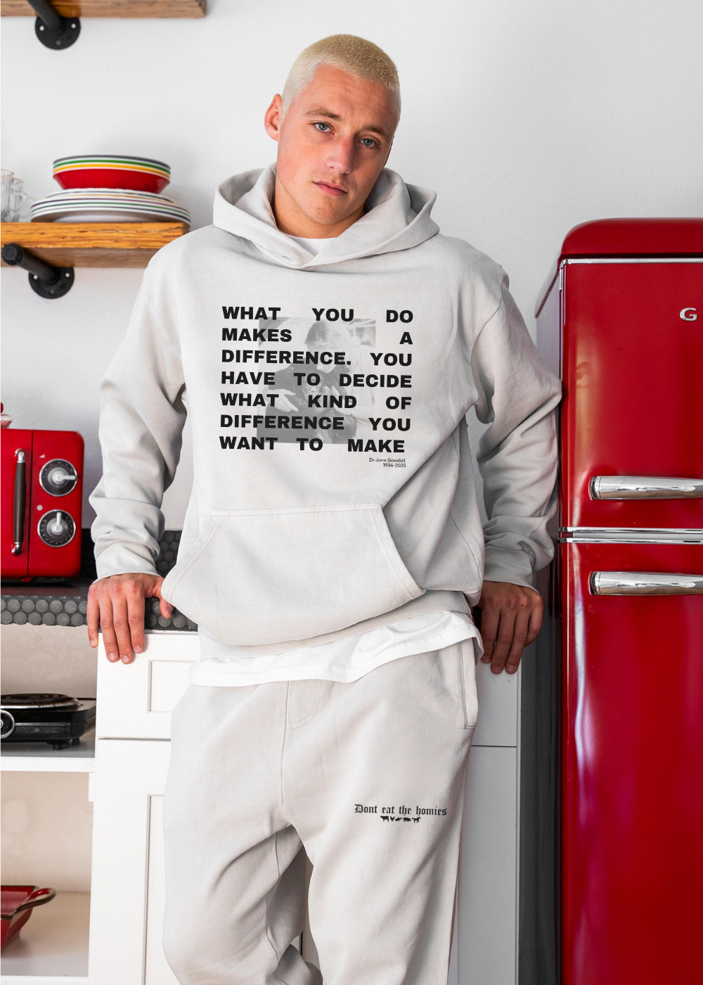 Designed with purpose, this hoodie features one of our favorite quotes from Dr. Jane Goodall’s across the chest:
