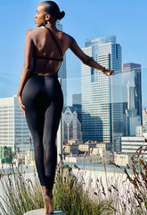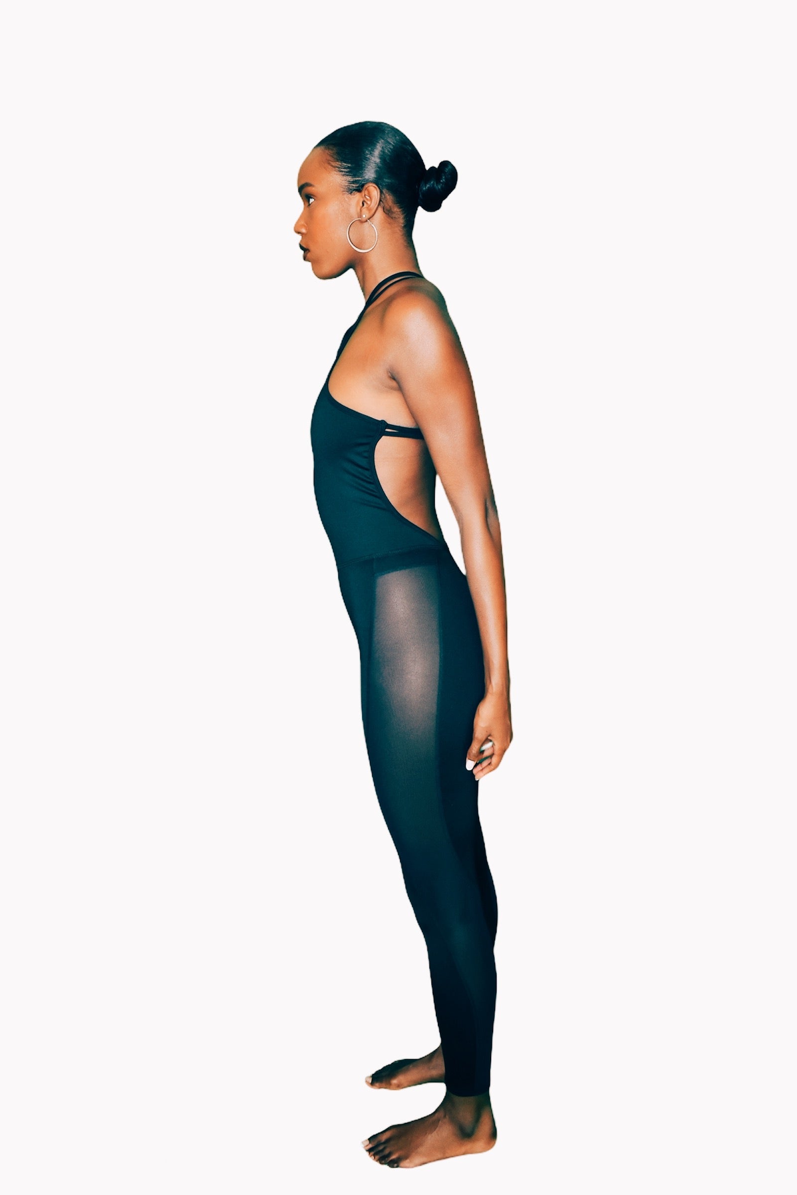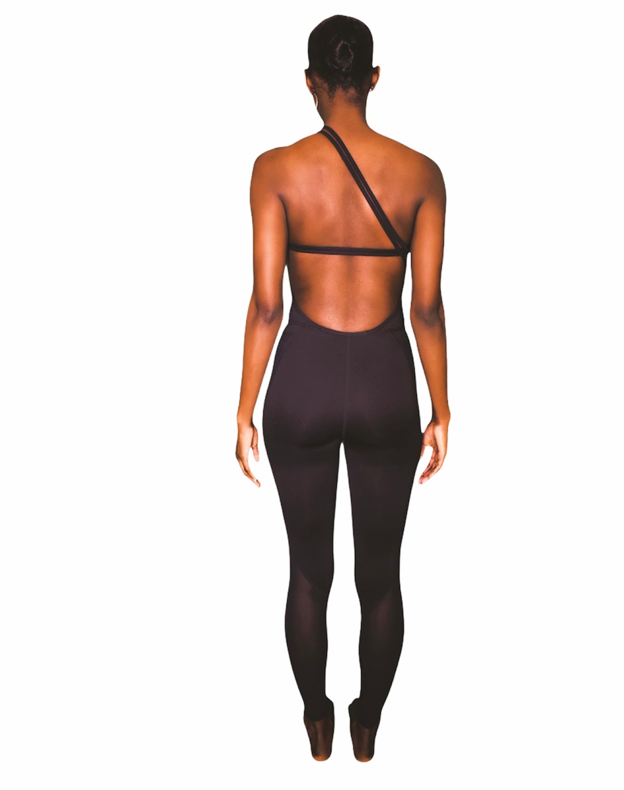Layer this versatile jumpsuit under your favorite top or wear it on its own. One-shoulder design with mesh cut outs on outside of both legs, accentuated waistline for the perfect snatch and open back. Smooth, like butter, super soft, comfortable and fits like a glove. Need!