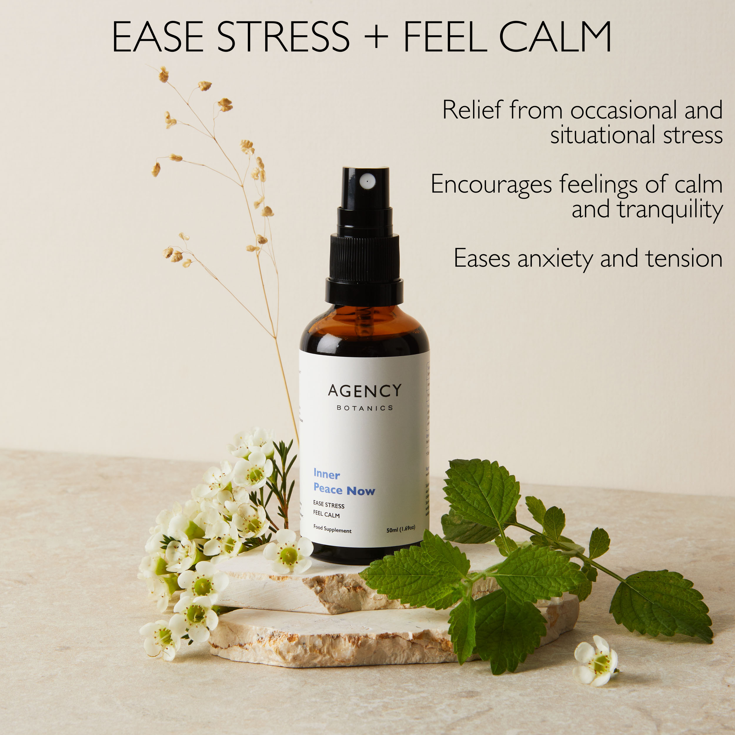 Stress is unavoidable. Our Inner Peace Now herbal formula helps you face the day, no matter where you are. This take-anywhere, stress-busting blend helps to provide fast-acting support for anxiousness and circumstantial stress that may arise from time to time. It’s made to travel with you throughout your day and can be sprayed directly in the mouth for fast-acting and convenient relief.