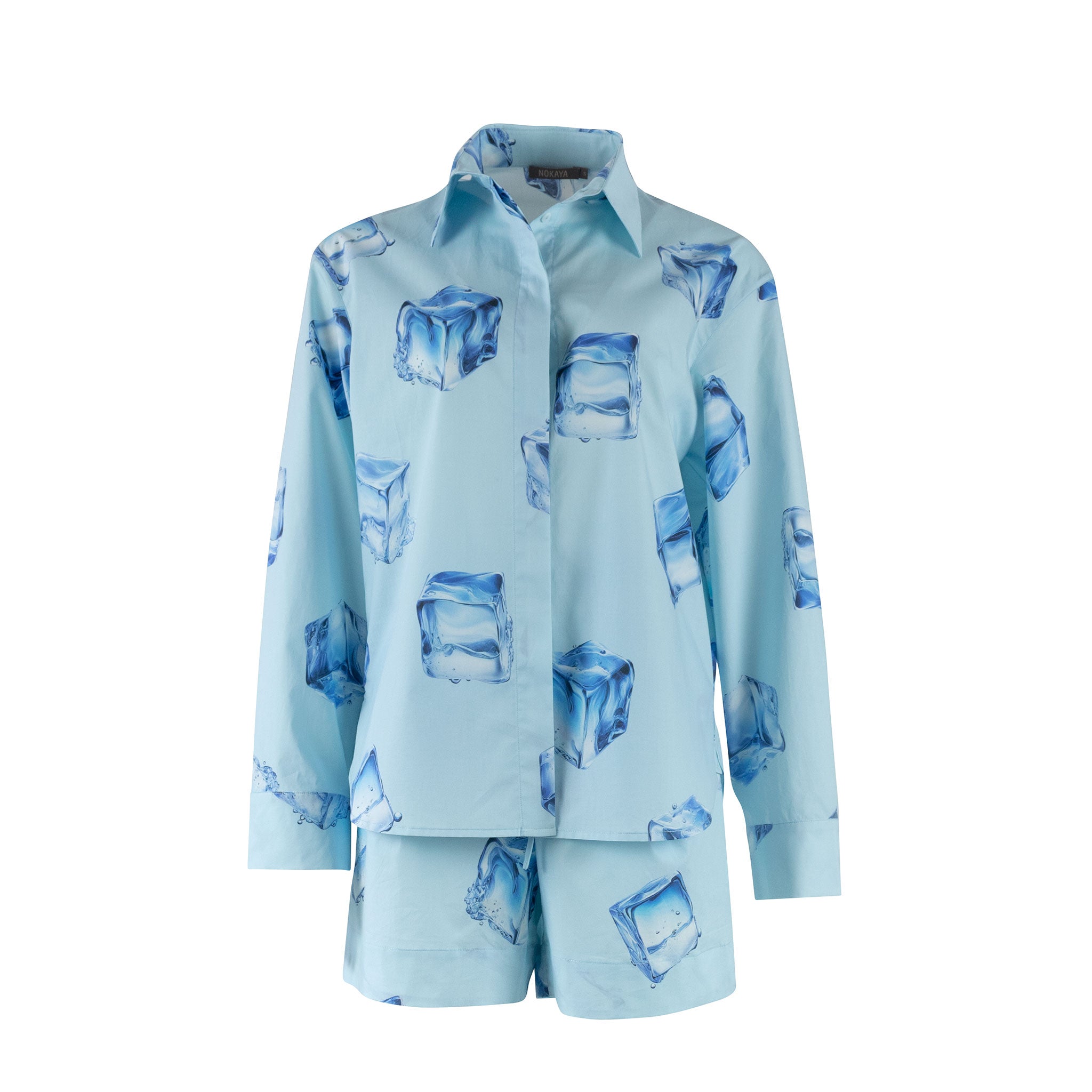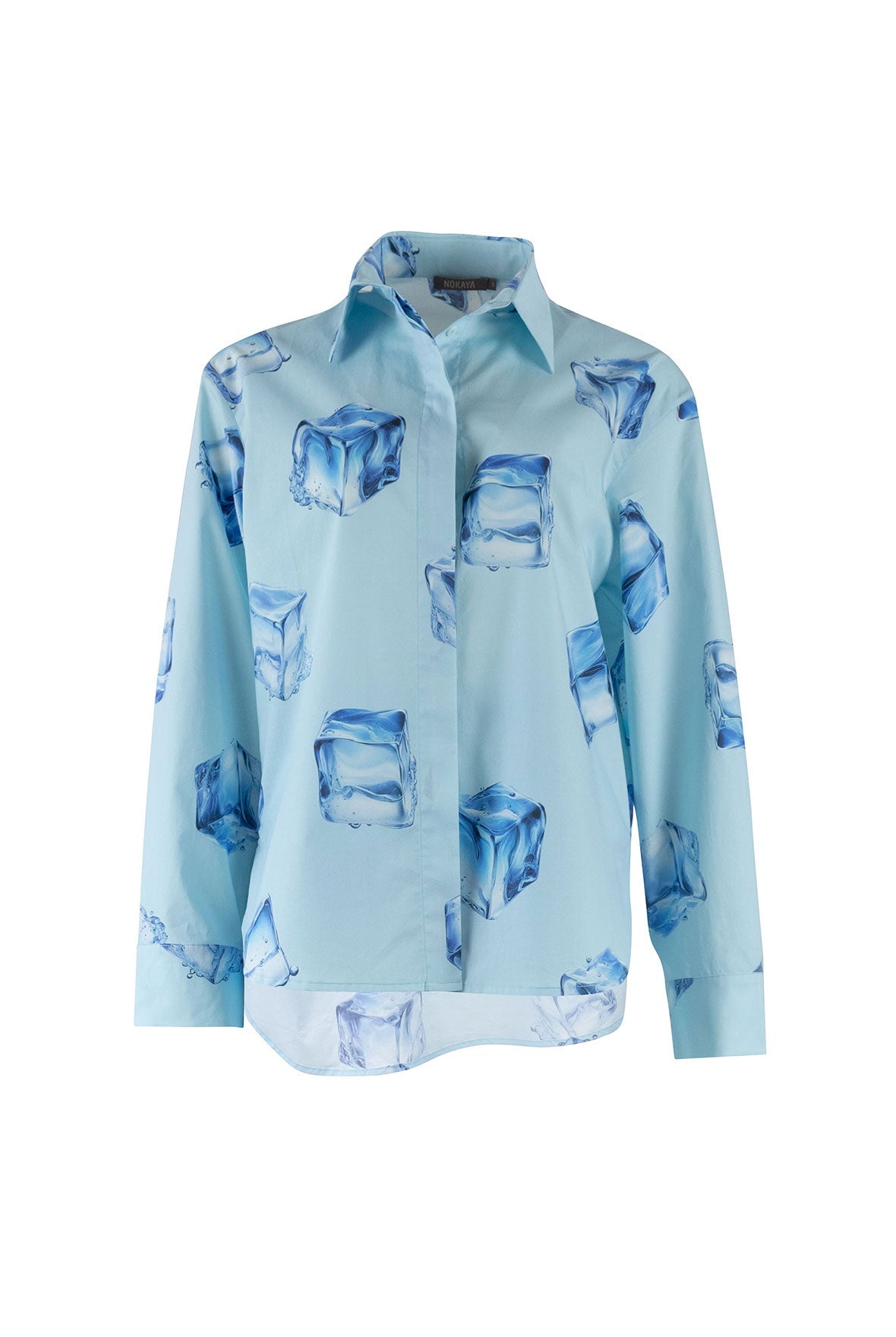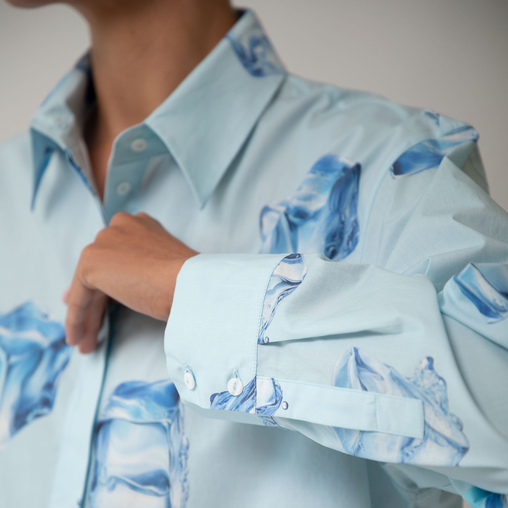 The excellent blue background with a unique ice cube print adds a refreshing twist to this classic shirt.