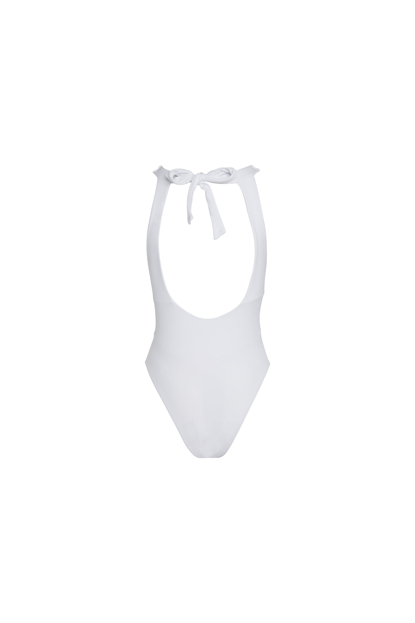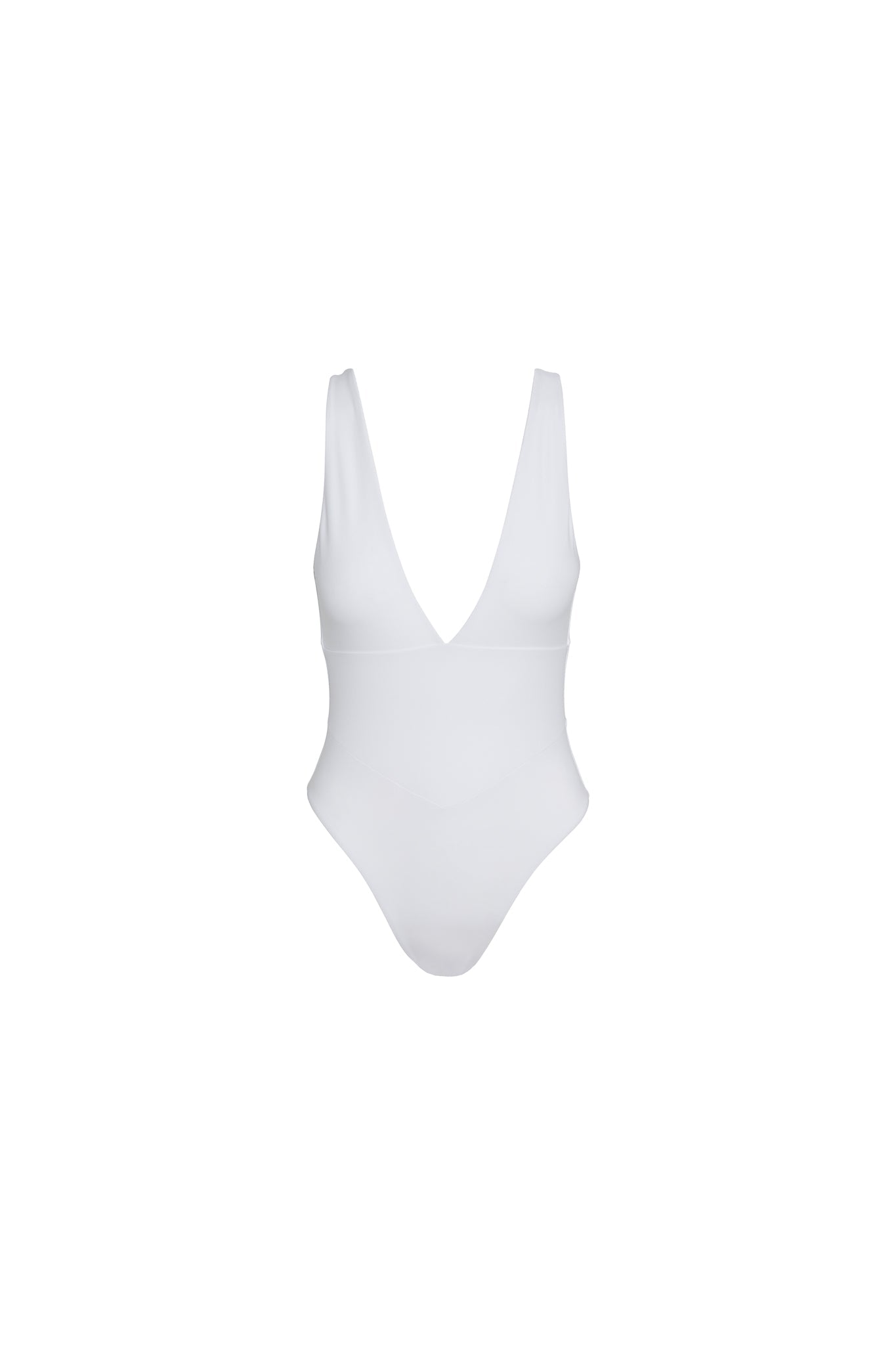 Make a move in the Jennifer One Piece. This maillot features a sophisticated V neckline and a chic leotard bow in the back. The bow is placed at the upper back therefor relieving tension sometimes caused by bows around the neck. Jennifer has a high leg line and a small to medium bum coverage so boys beware... we run this town.