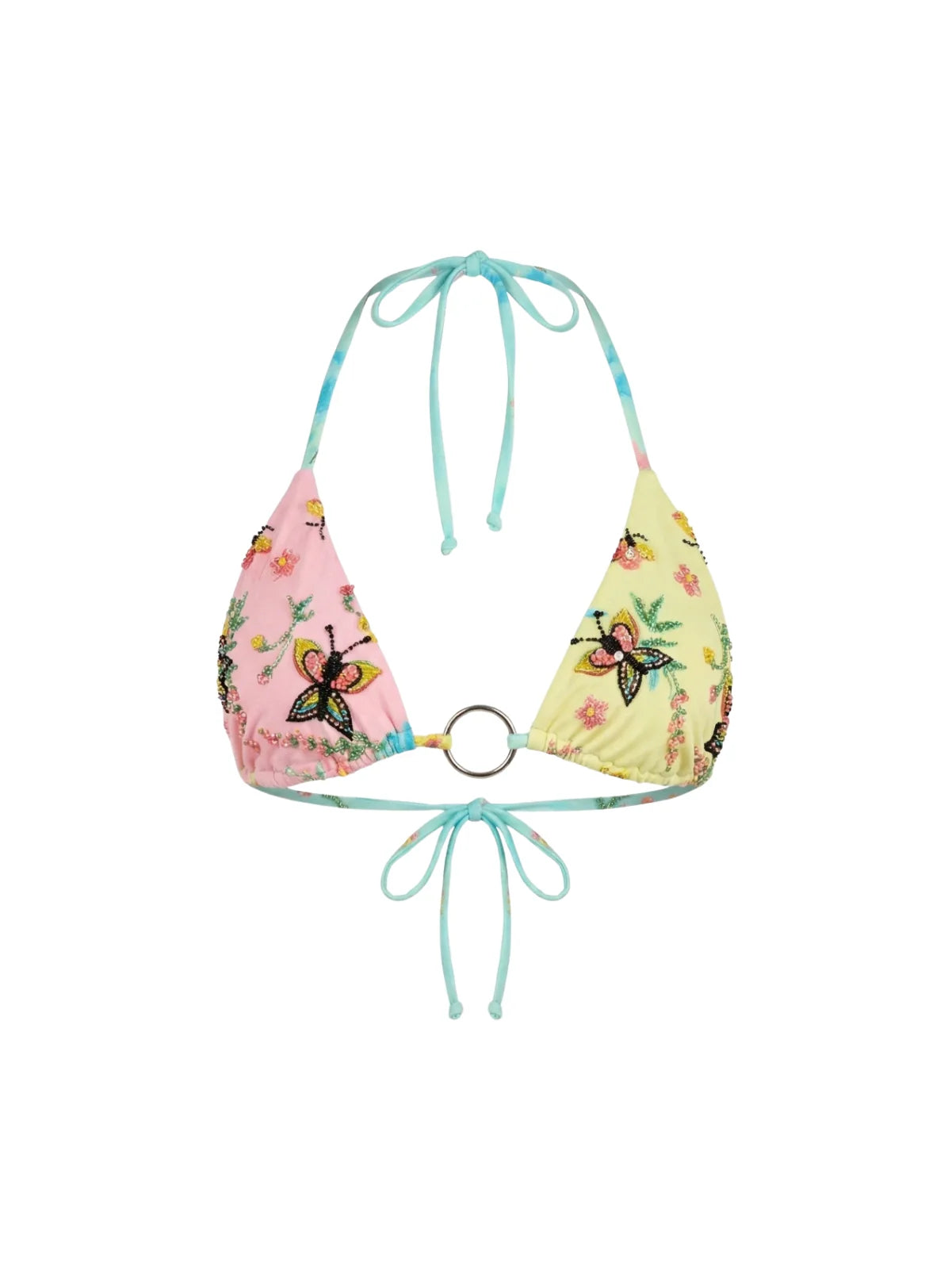 Kehlani is a multi-coloured, hand embroidered Bikini featuring self tie straps. The design of this piece is an exclusive Oceanus print, meaning whether you're beachside or poolside, you'll be the one standing out from the crowd.