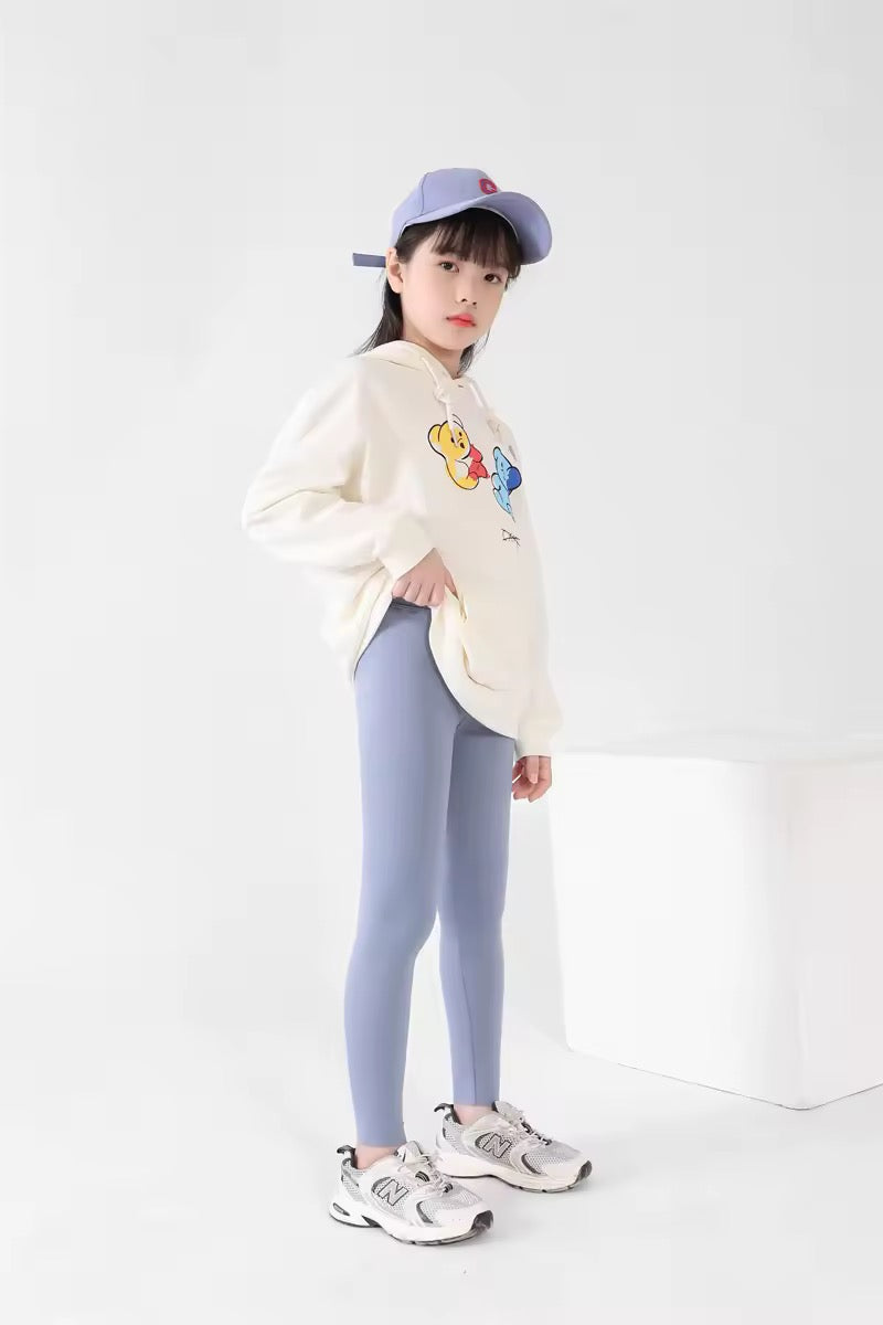 High-waisted, lagune blue leggings designed for active kids. These leggings are perfect for your little athlete, offering both comfort and flexibility for all their energetic movements. Keep them moving and comfortable with these leggings.