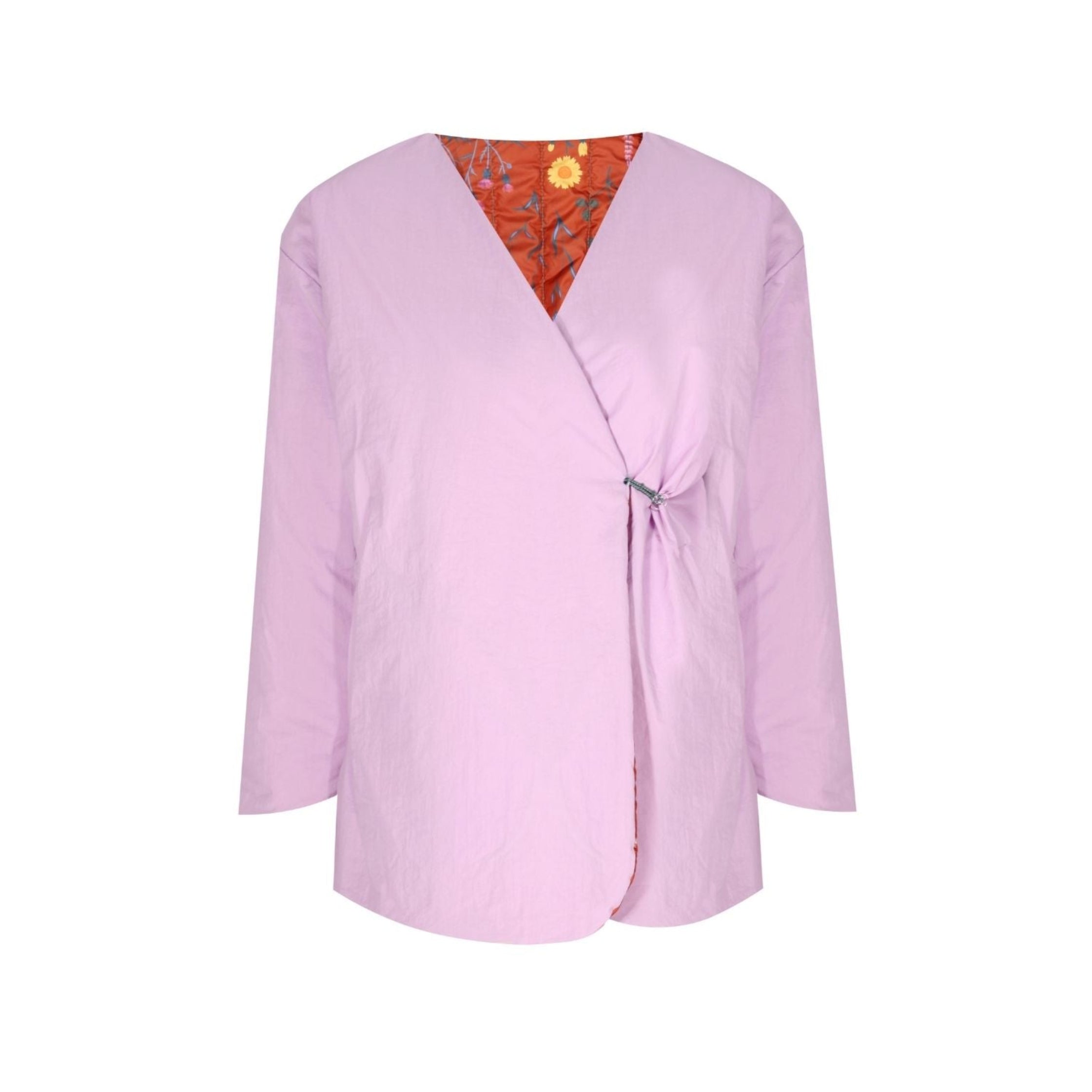 Flower Printed Kimono Style Puffer Jacket is an outerwear piece with a comfortable fit.