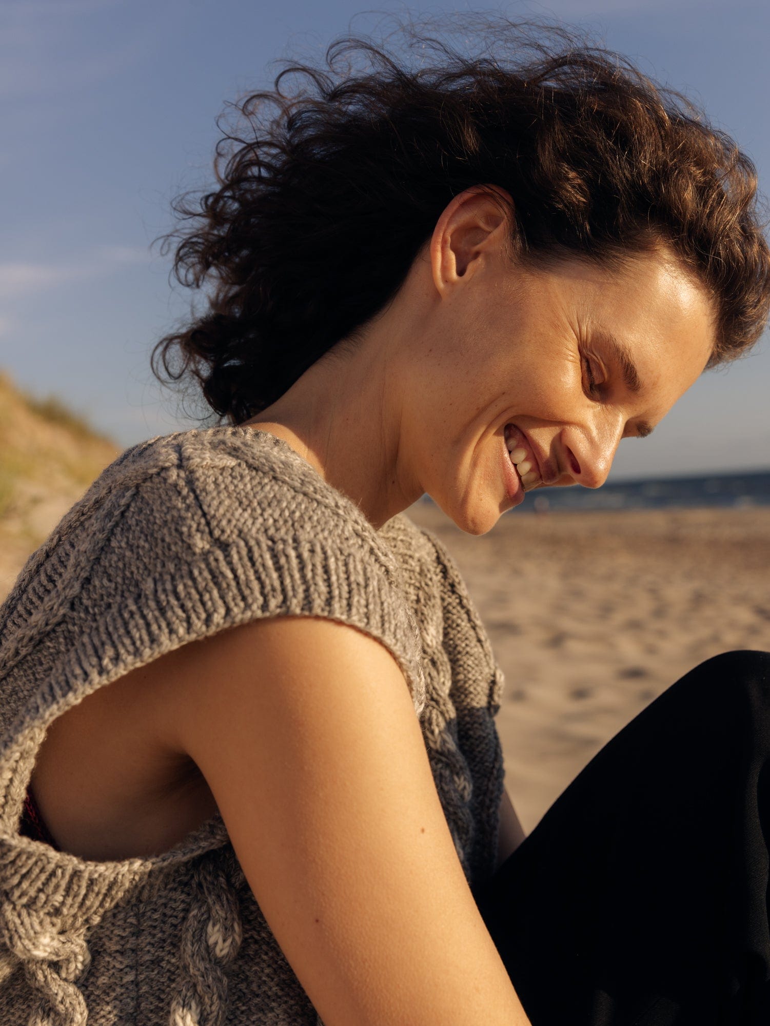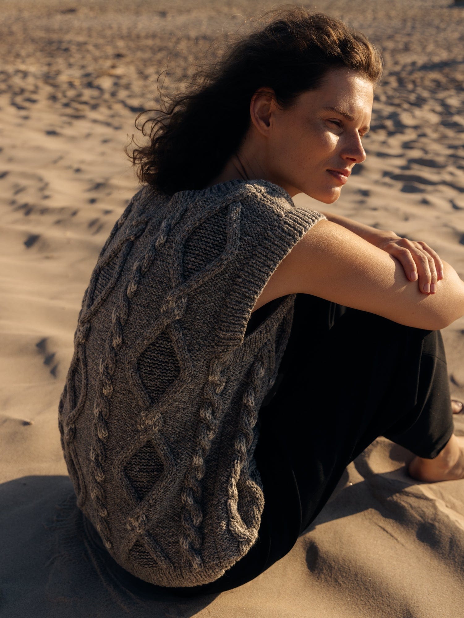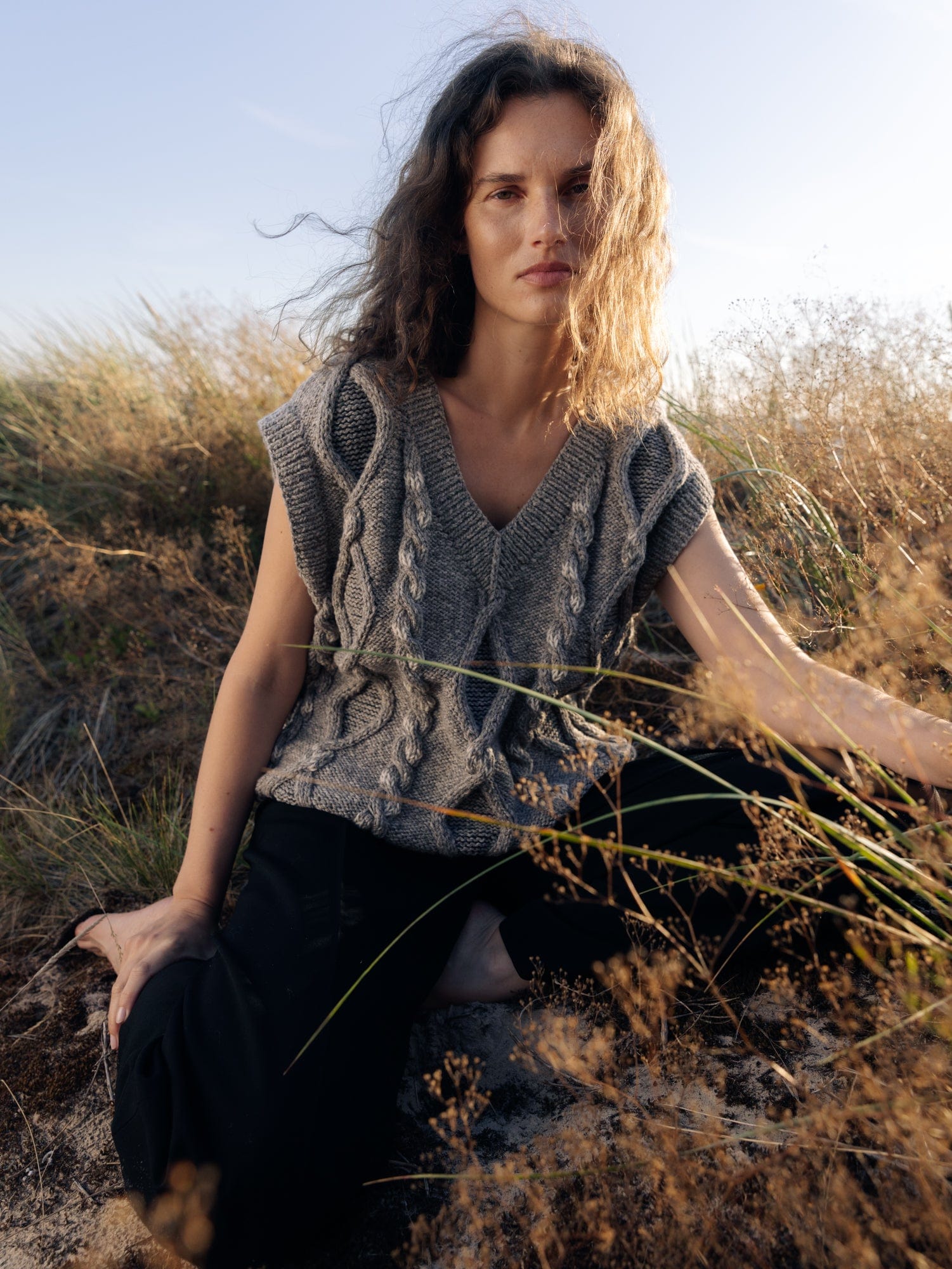 "Laimė" means "luck" in Lithuanian. The vest's cable was inspired by our Baltic roots and pagan symbols that our ancestors believed to bring good fortune. Her seriously soft yarn could have been spun by Baltic fairies, using our favourite blended yarn of baby Alpaca and Organic Pima Cotton. The oversized fit is perfect for seasonless layering. Soft to the touch and wrinkle-resistant, look closely to spot her subtle, traditional Lithuanian patterns, spinning folk stories of mythical animals and nature.