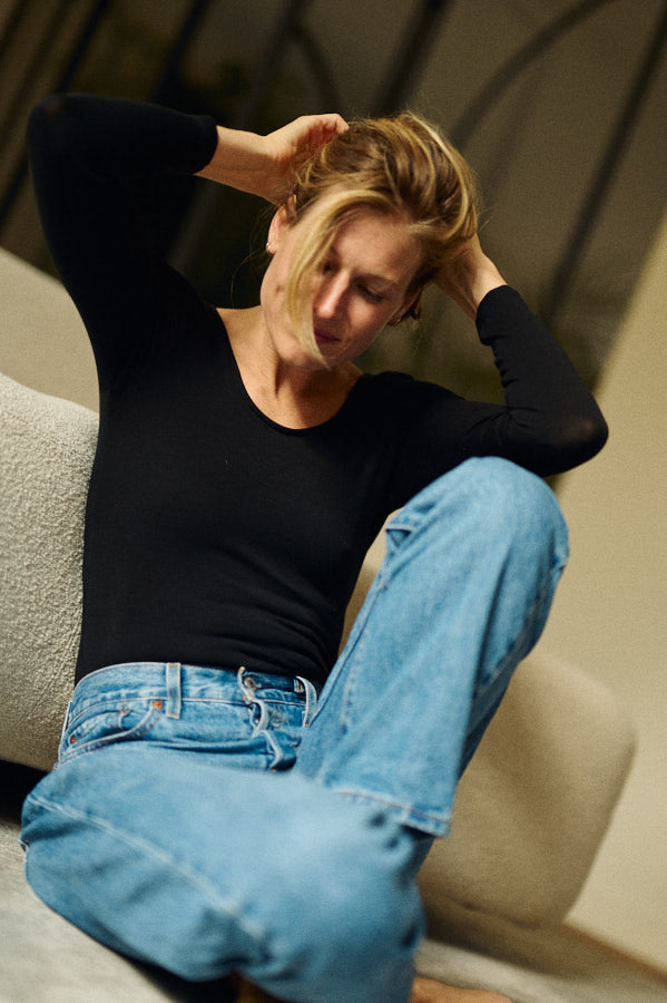 A delicate neckline, long and elegant sleeves, a fabric so soft that you melt into it, your quest for the perfect bodysuit ends here!