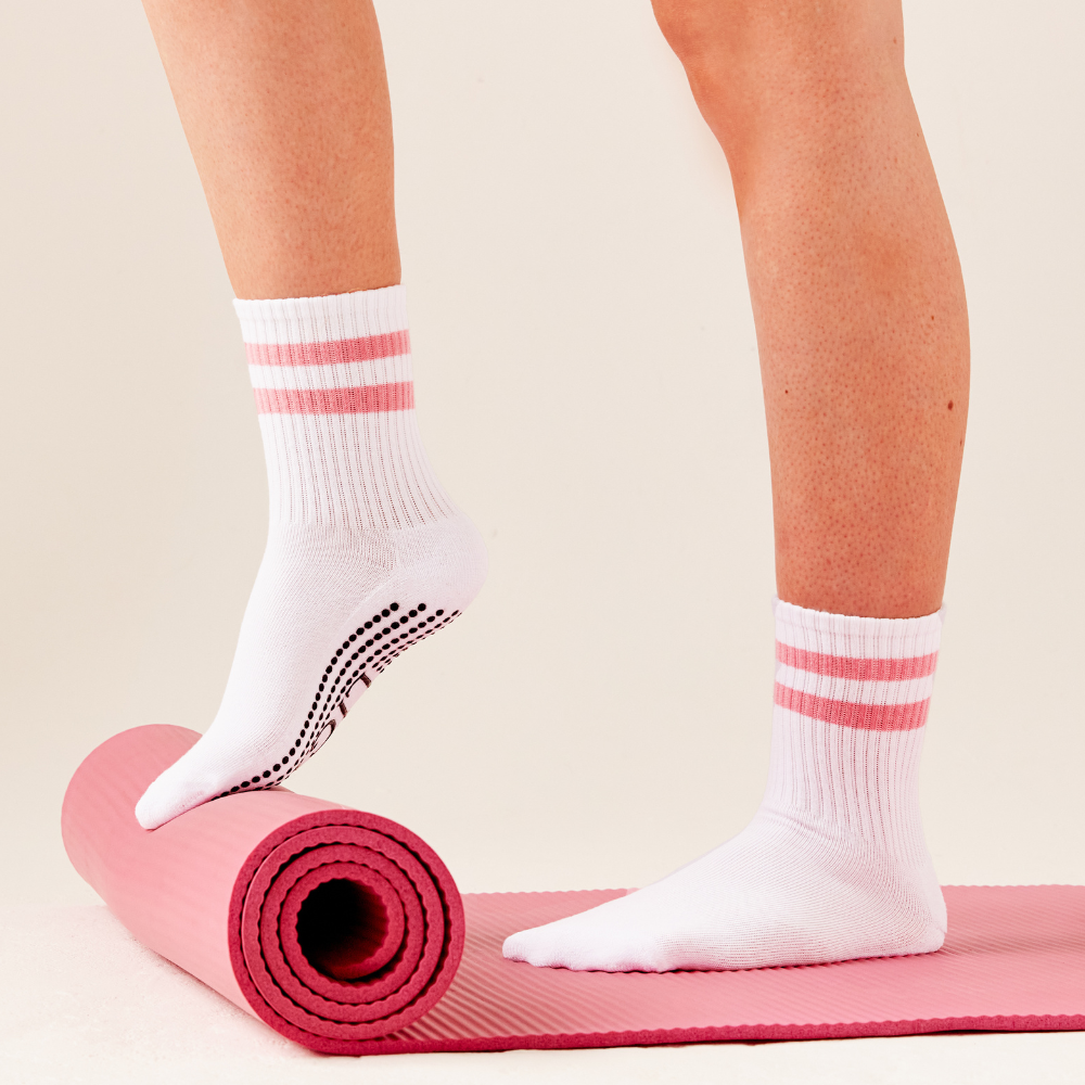 From the barre to the reformer, our classic and most loved grip socks will transform your fitness routine. With dreamy Barbie approved pink stripes, these socks have a dream fit that will enhance your workout experience whatever level you’re at.