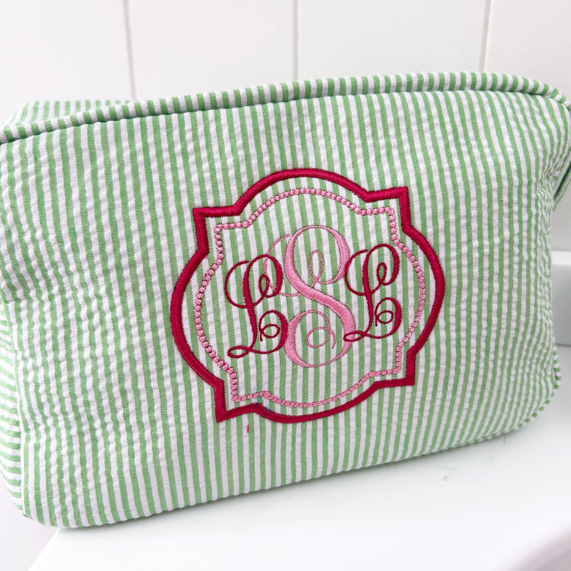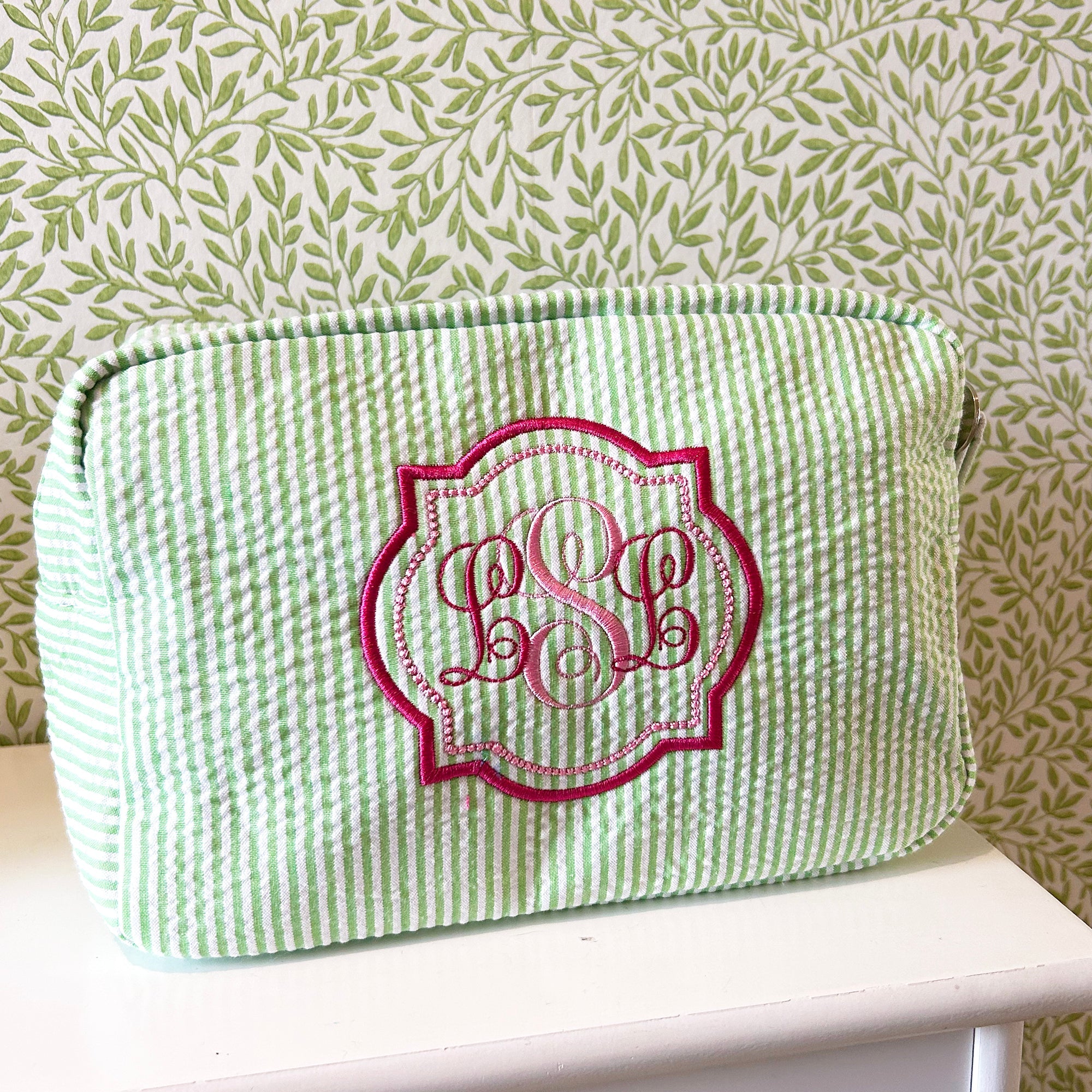 This totally adorable, customizable cosmetic pouch from our London studio is the ideal gift for any fashionista—choose embroidered initials to make it 100% yours! Not to mention, it's totally practical too! Just look at the abundant style options in the style chart and let me know if you'd like to switch up the embroidery colors. Perfect for hauling your beauty must-haves or for restocking your minibar—it's a must-have for any gal-on-the-go! Perfect as a bday or holiday present.