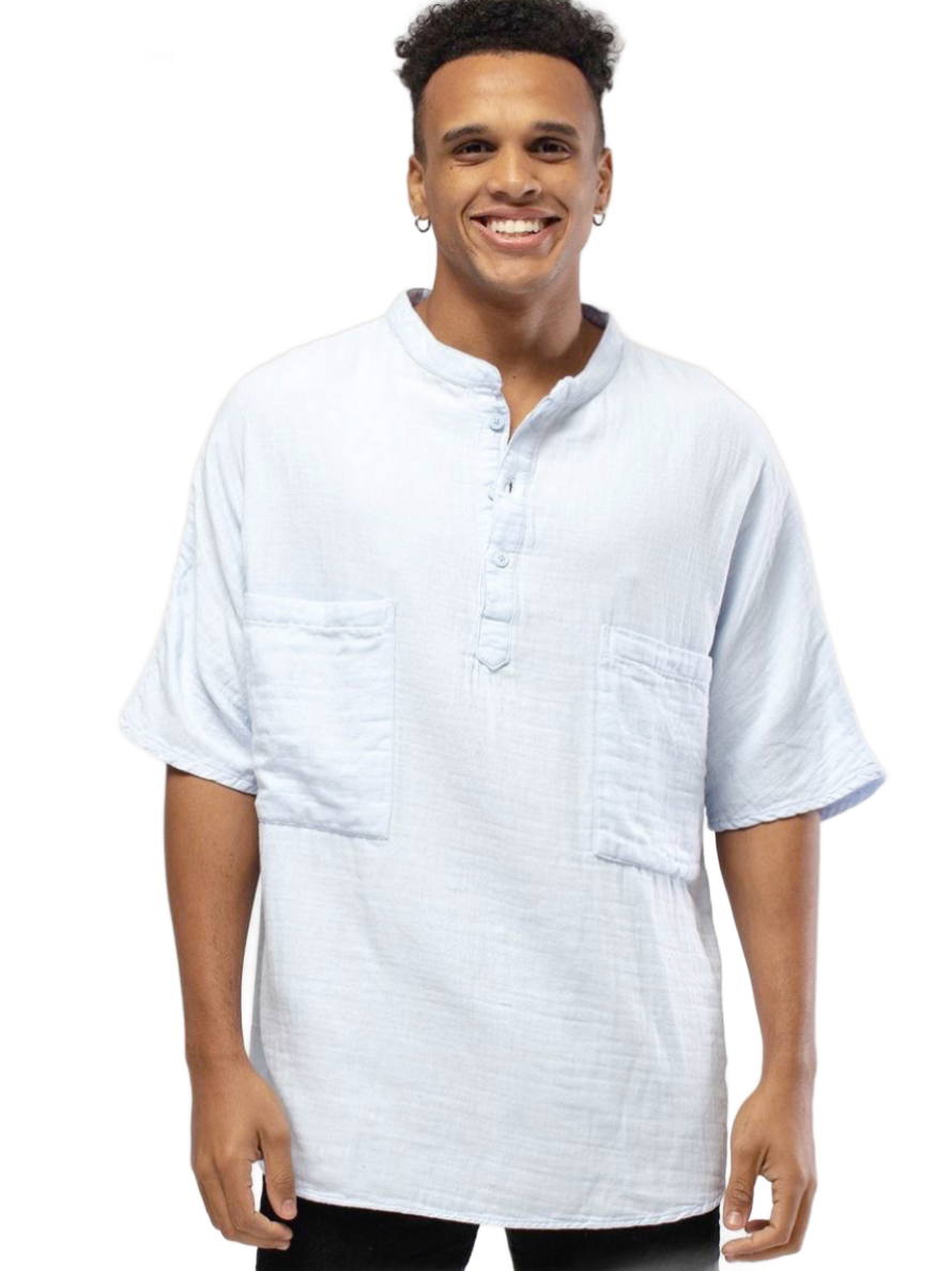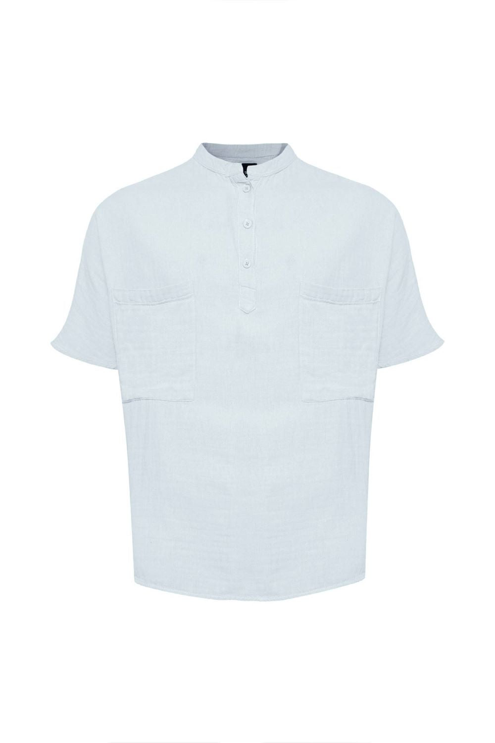 Crafted from high-quality linen, this blue shirt features a stylish mandarin half neck, button closure, and two chest pockets. Its breathable fabric and versatile design make it perfect for any occasion. Stay cool and stylish in this must-have shirt.