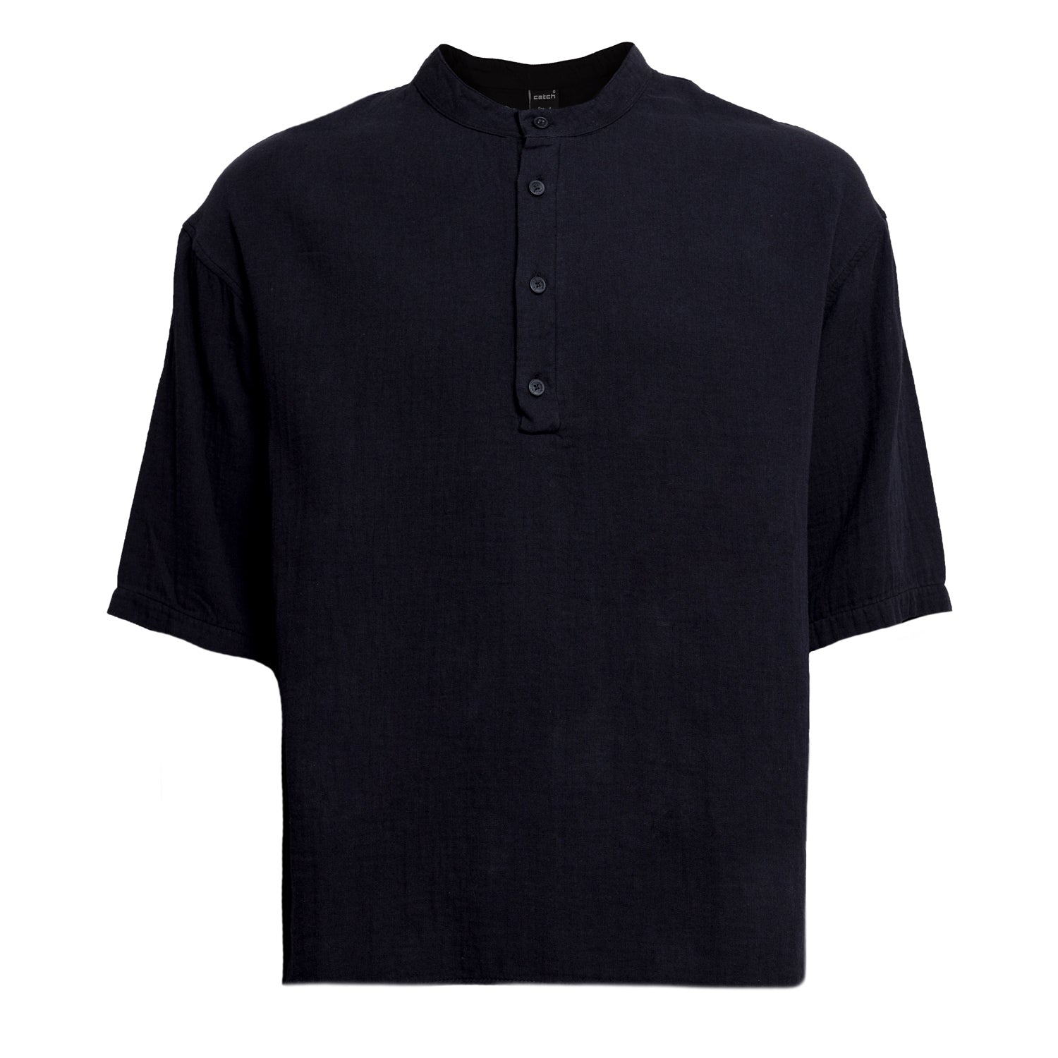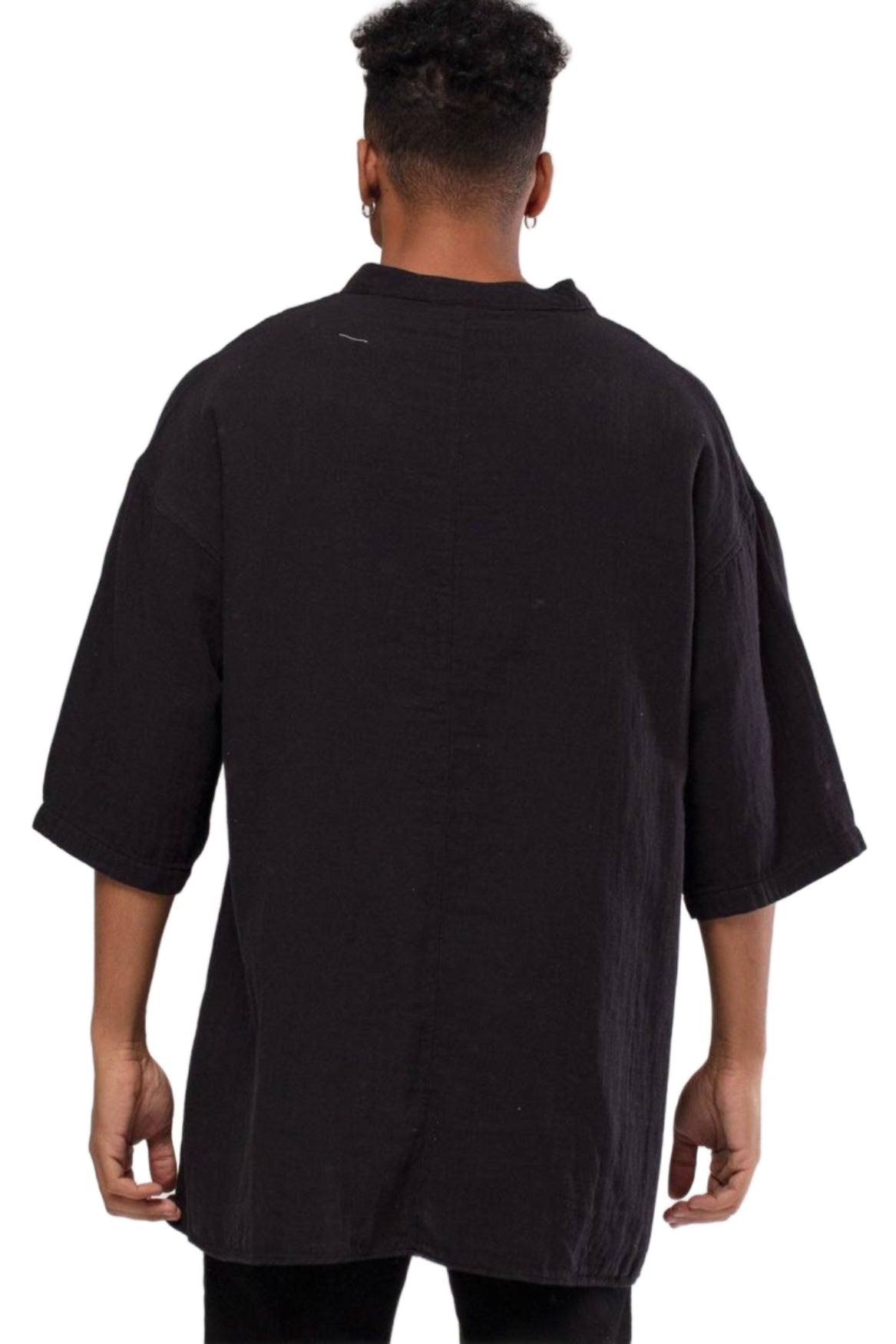 Introducing the Linen Mandarin Neck Half Button Short sleeve Shirt in Black. This sophisticated shirt features a mandarin collar, half-button placket, and short sleeves, making it a versatile and stylish addition to any wardrobe. Made of lightweight linen, it offers breathable comfort for any occasion.