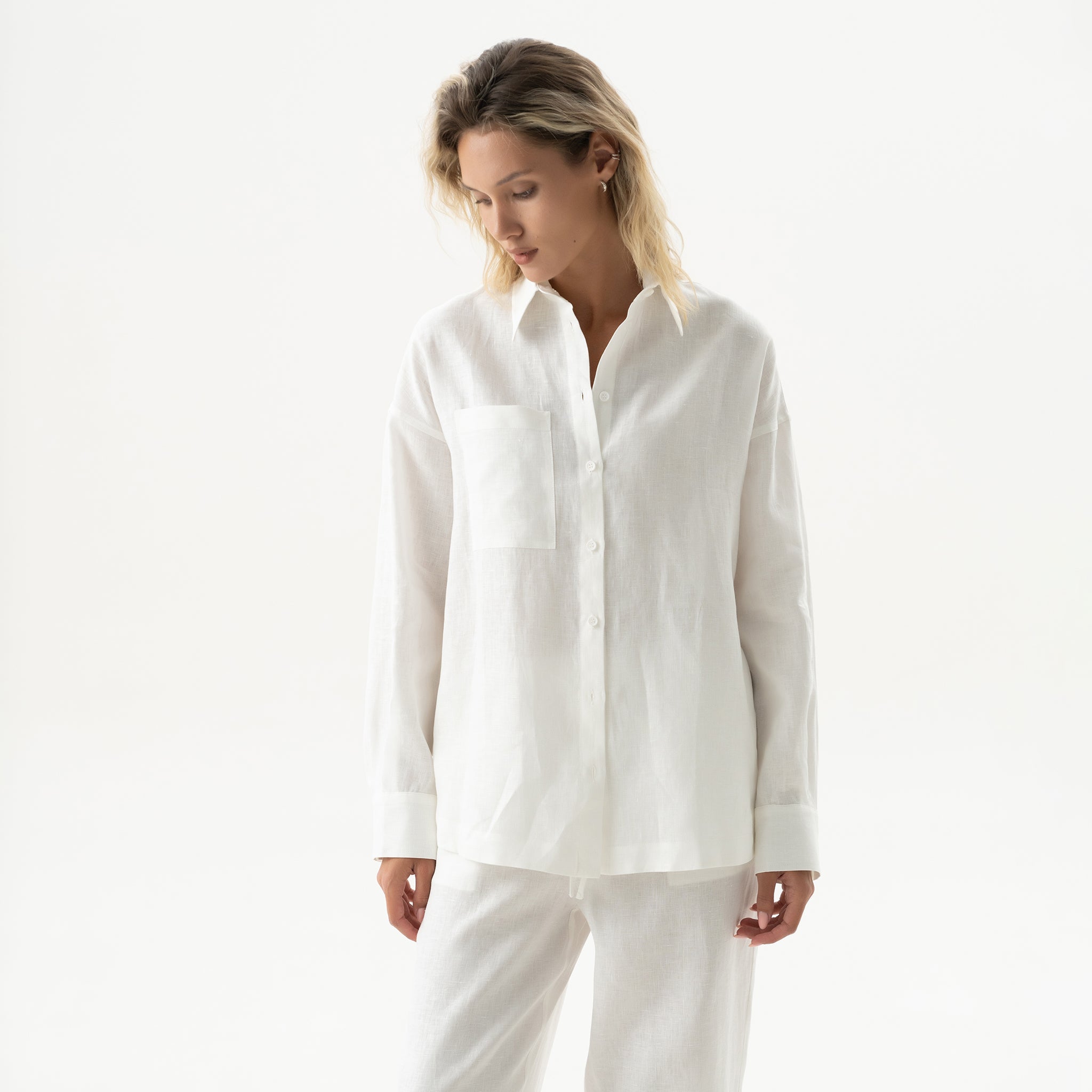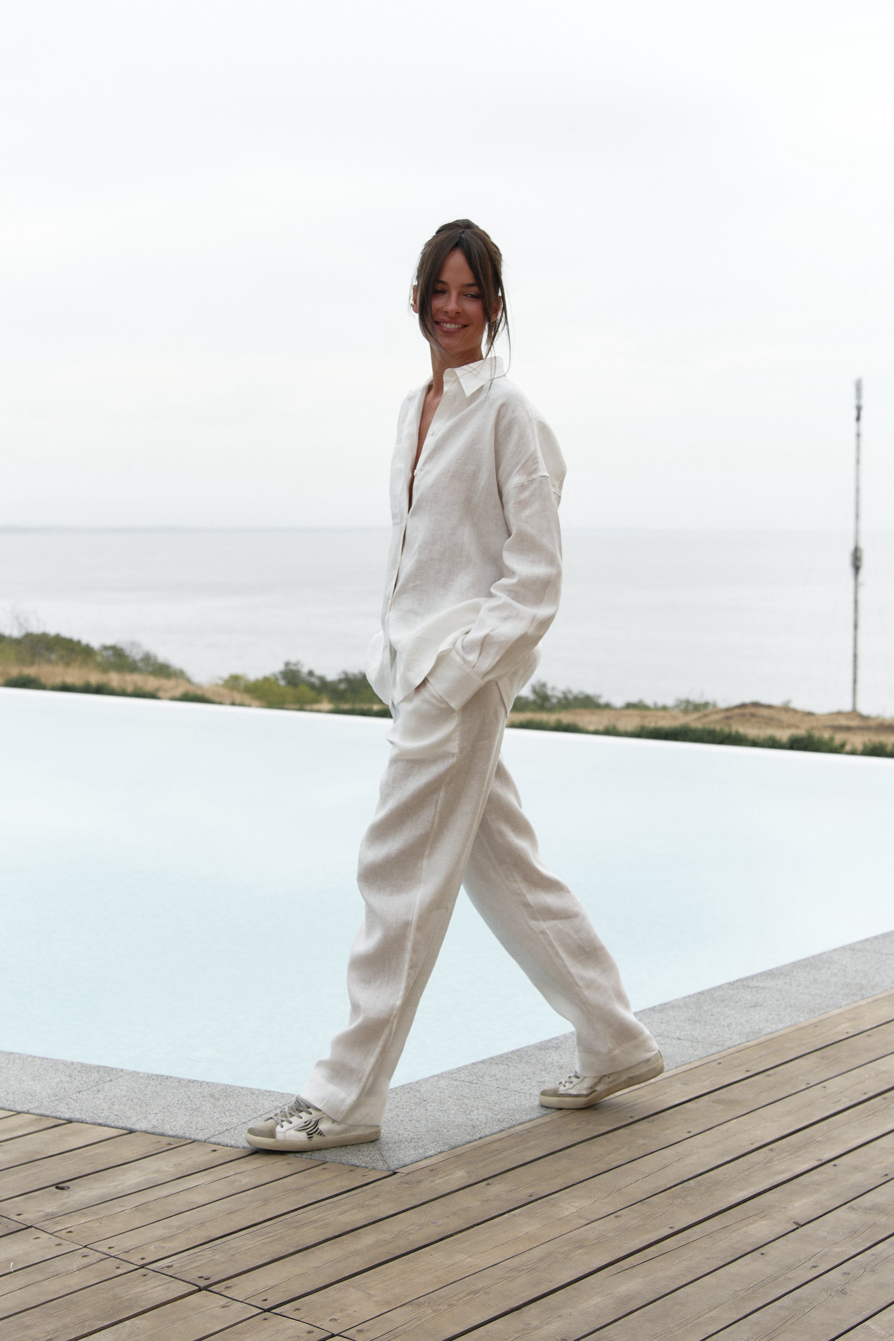 Style Tip: Tuck into the matching linen trousers for a monochrome moment, or layer open over swimwear for an effortless holiday style.