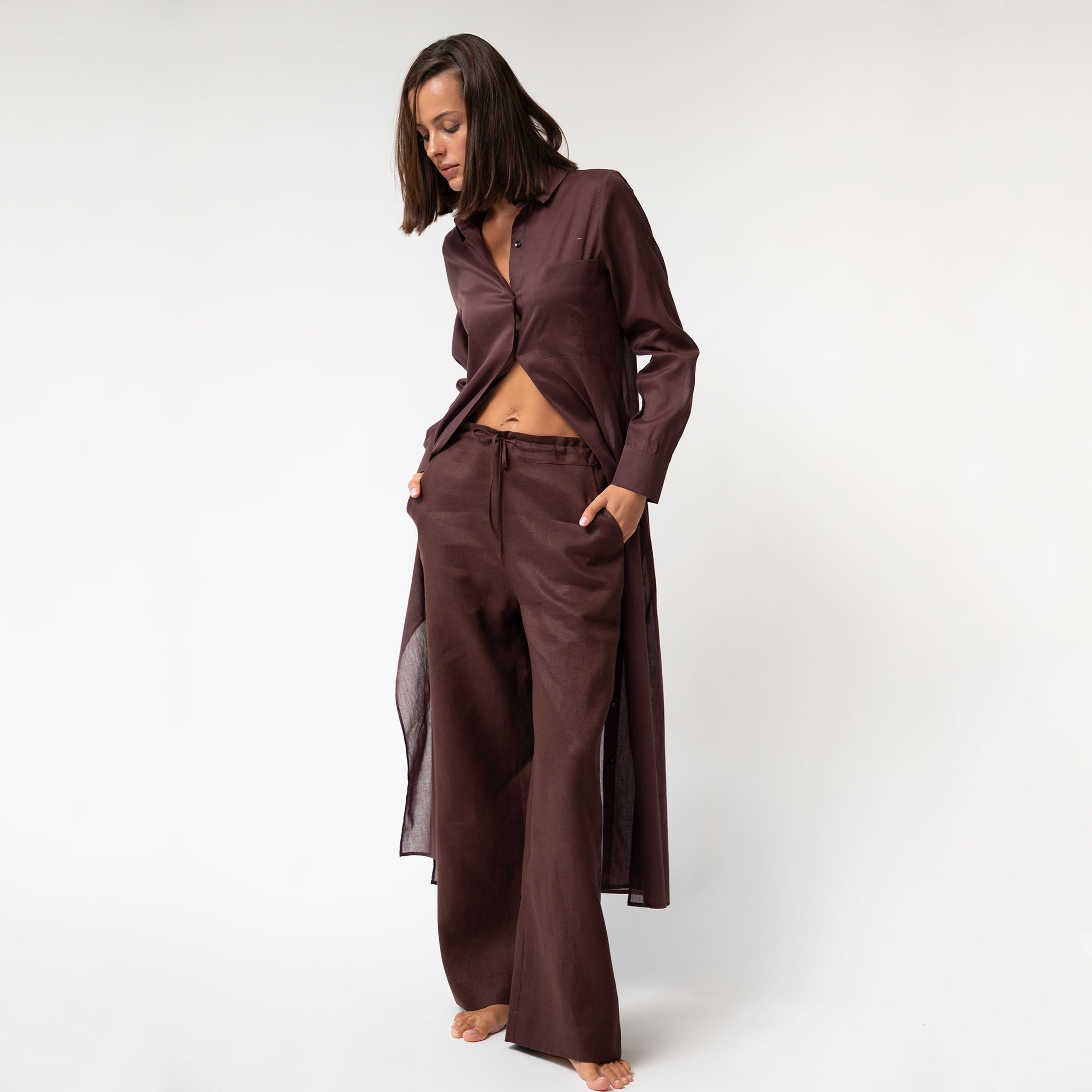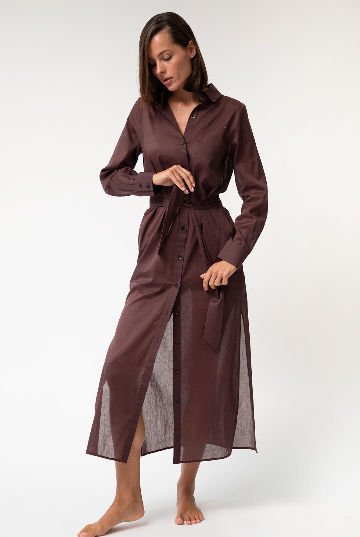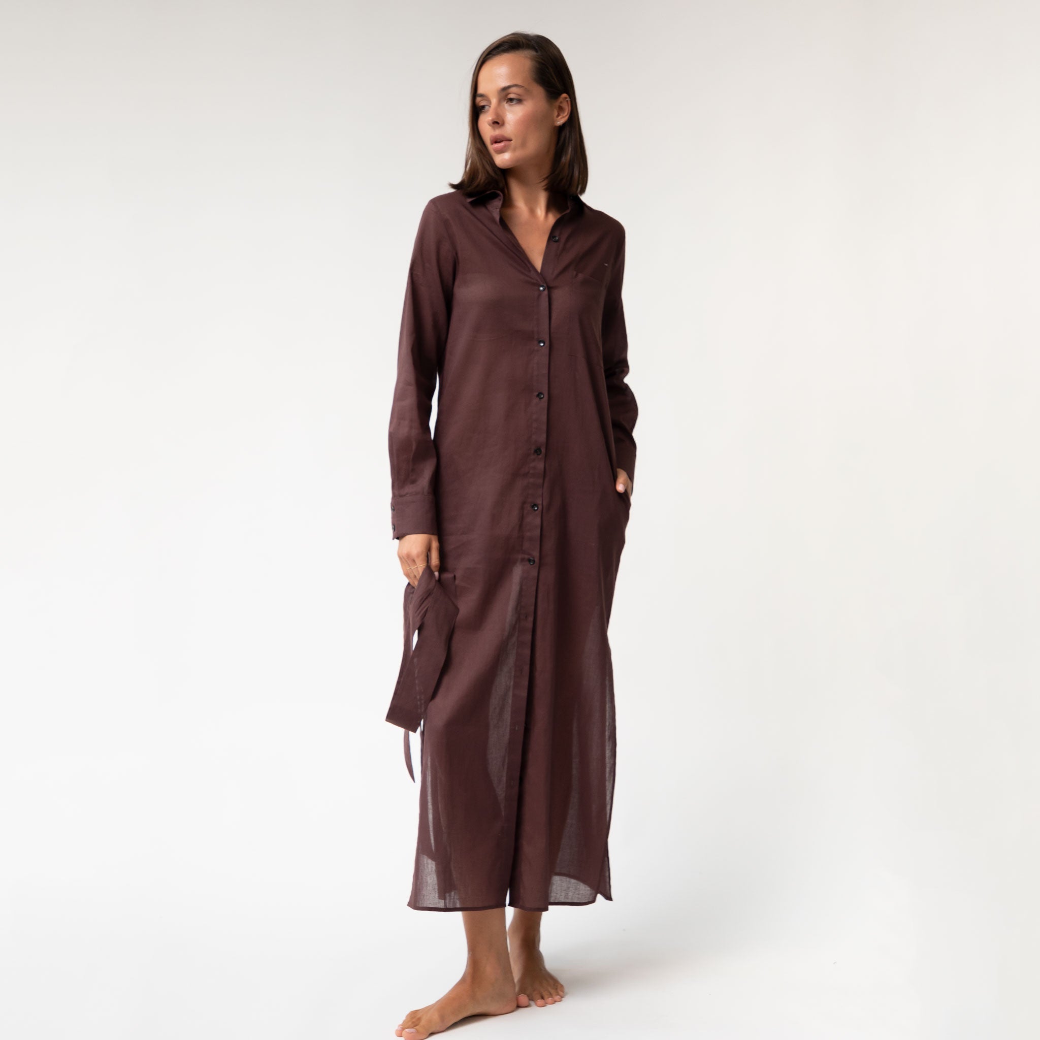 The Linen Voile Long Shirt Dress is made from high-quality Linen Voile, known for its lightweight and breathable qualities. It features a concealed button placket and a breast pocket, which add a clean and refined finish to its design.