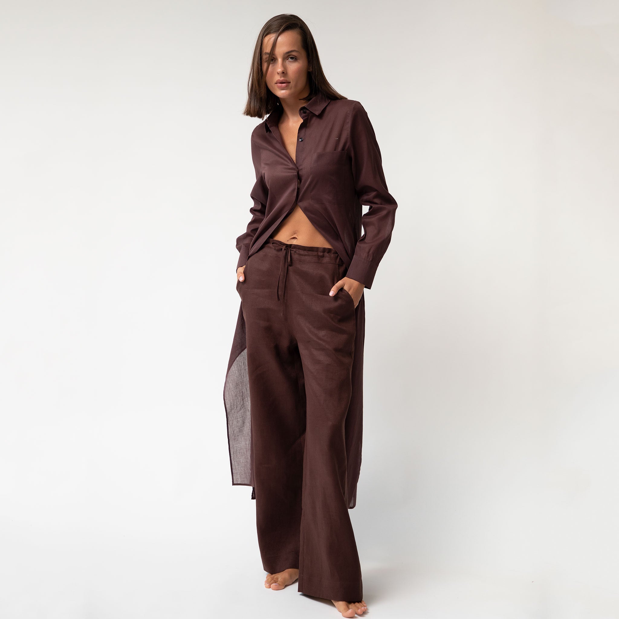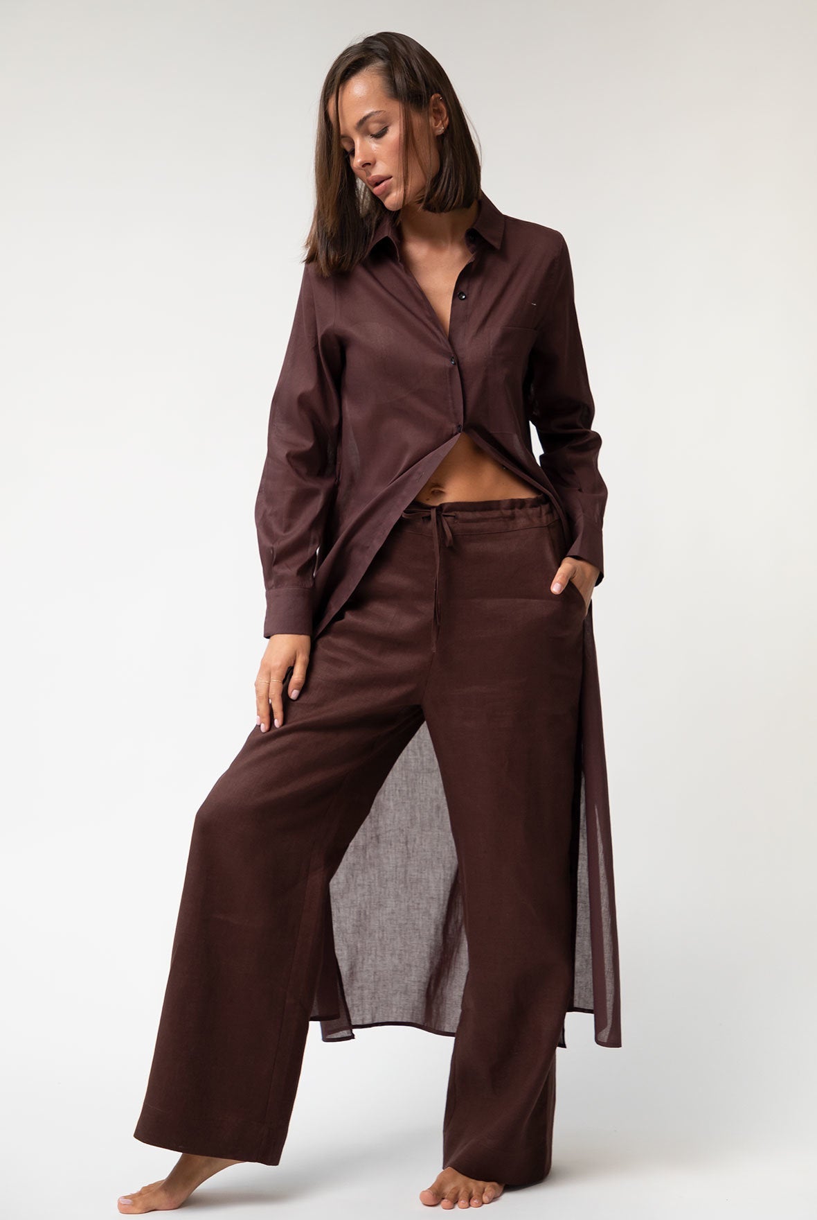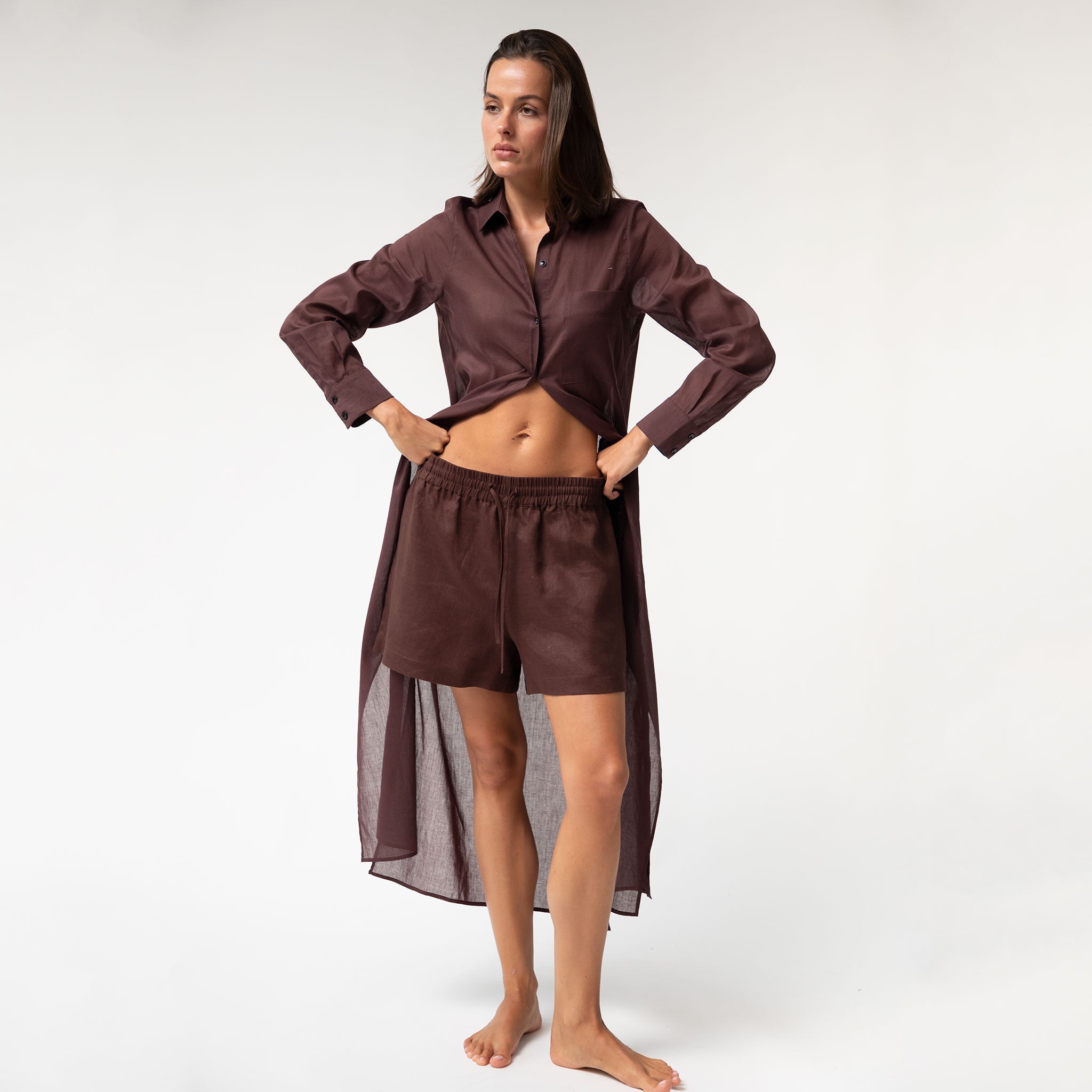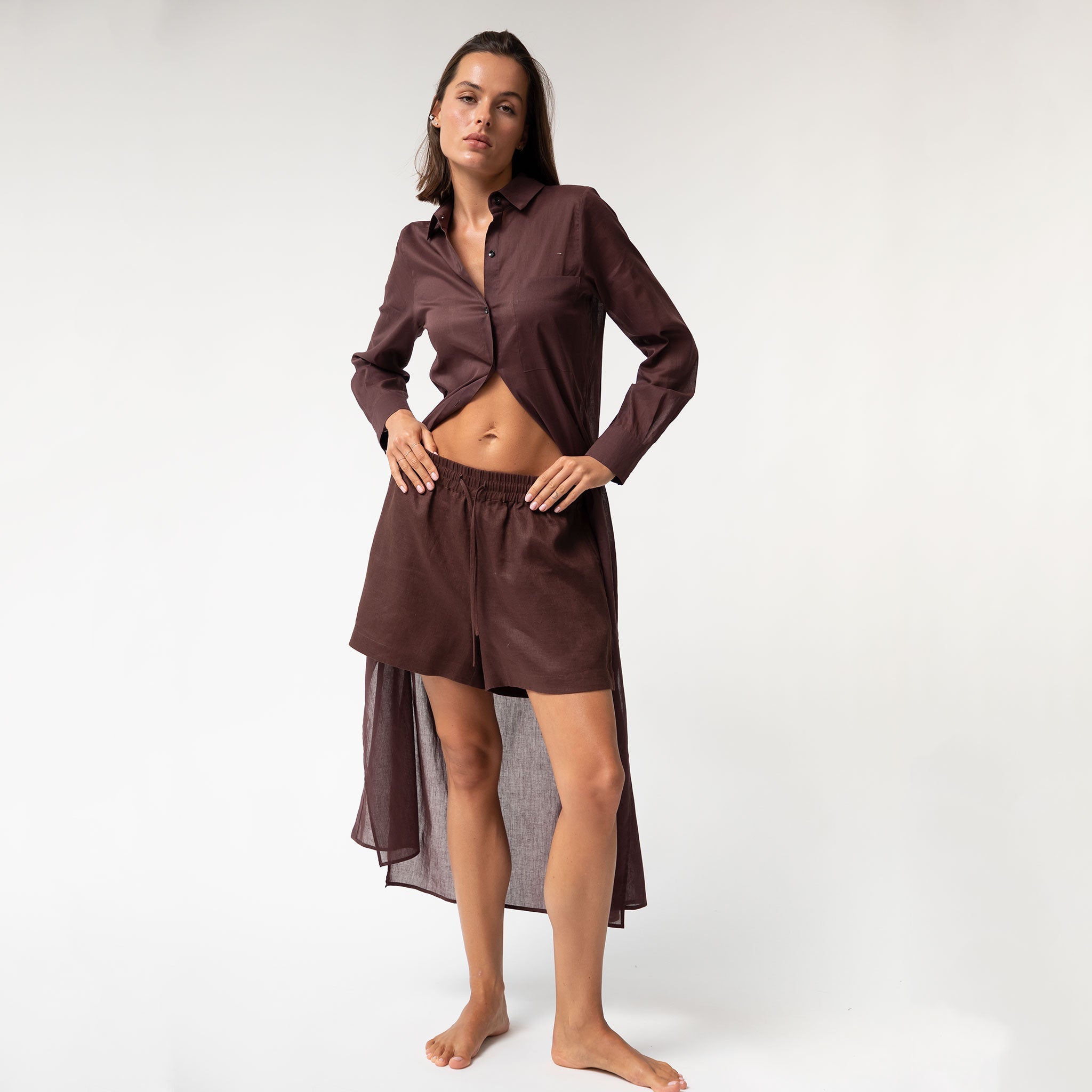 The Linen Voile Long Shirt Dress is made from high-quality Linen Voile, known for its lightweight and breathable qualities. It features a concealed button placket and a breast pocket, which add a clean and refined finish to its design.