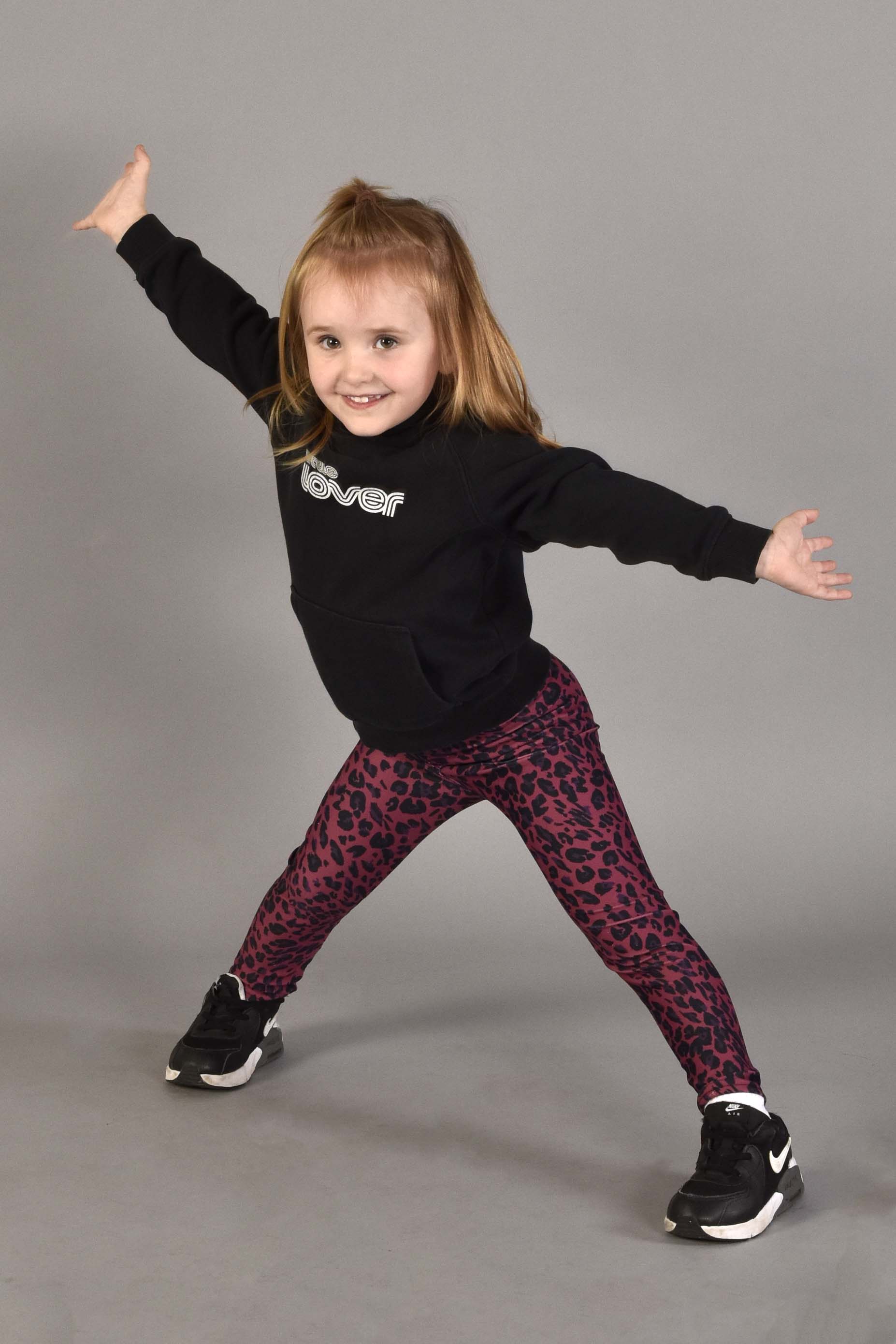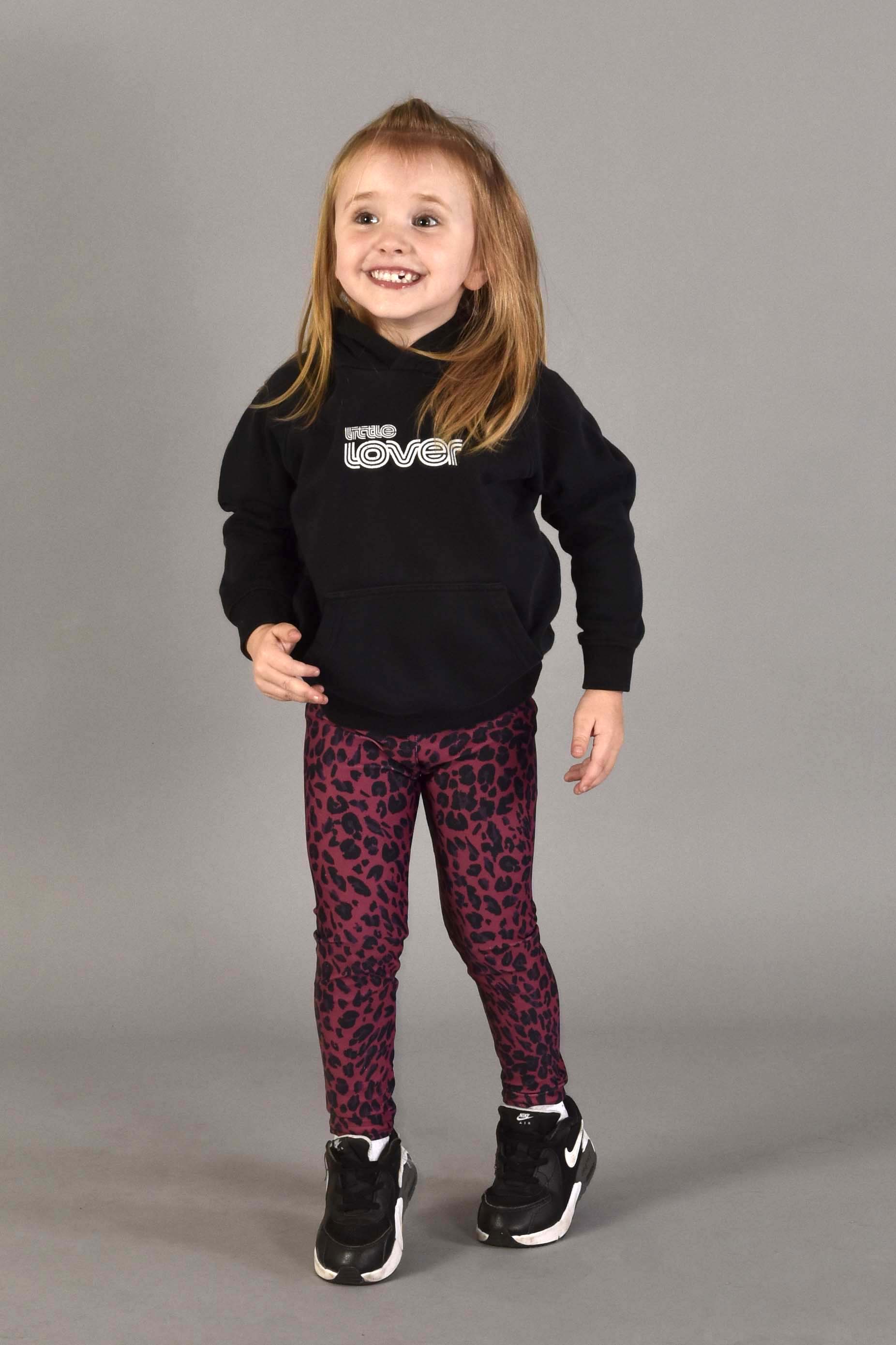 Model is 4 years old, 41" tall, wearing a Size 4Y