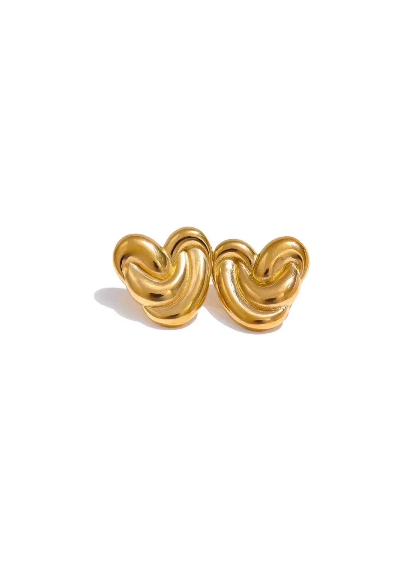 Introducing the Liv Heart Sculptural Earrings. These gold-tone earrings feature a bold, fluid design, elegantly shaped into a modern interpretation of a heart. They are the perfect statement piece for elevating your day-to-night wardrobe. Lightweight yet striking.