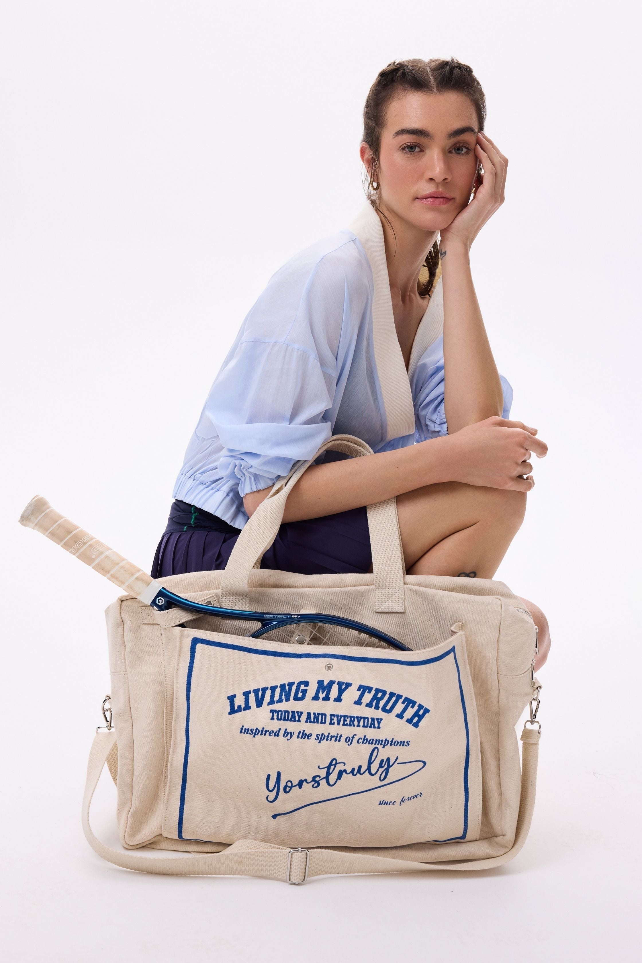 Channel the spirit of champions with the Yorstruly canvas sports bag; A bold, functional statement for those who live their truth every day. Designed with athletes and active lifestyles in mind, this spacious tote fits all your essentials while reflecting your commitment to authenticity and style.