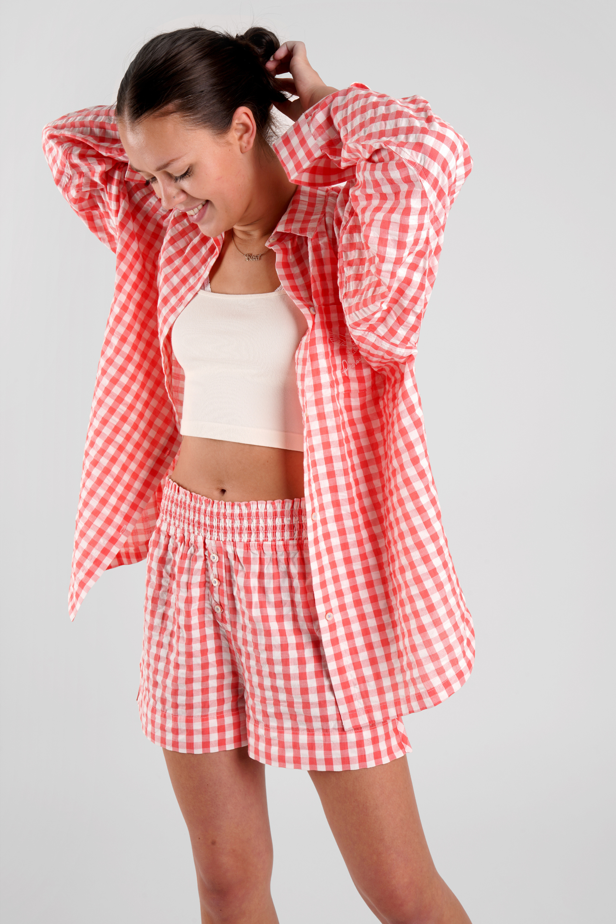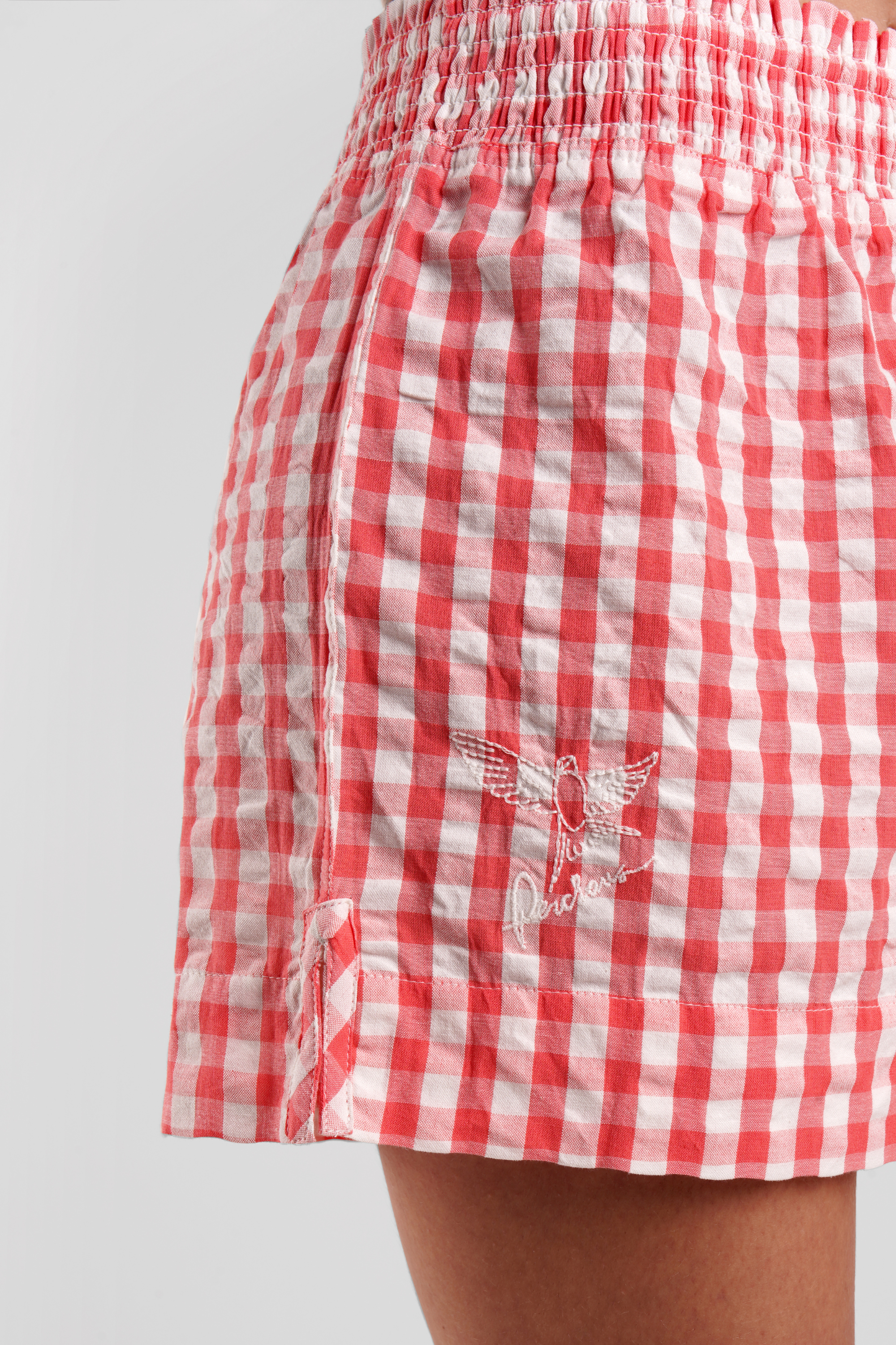 Lomandra Gingham Check Ethical-Cotton Pyjama Shorts - Canyon Peach