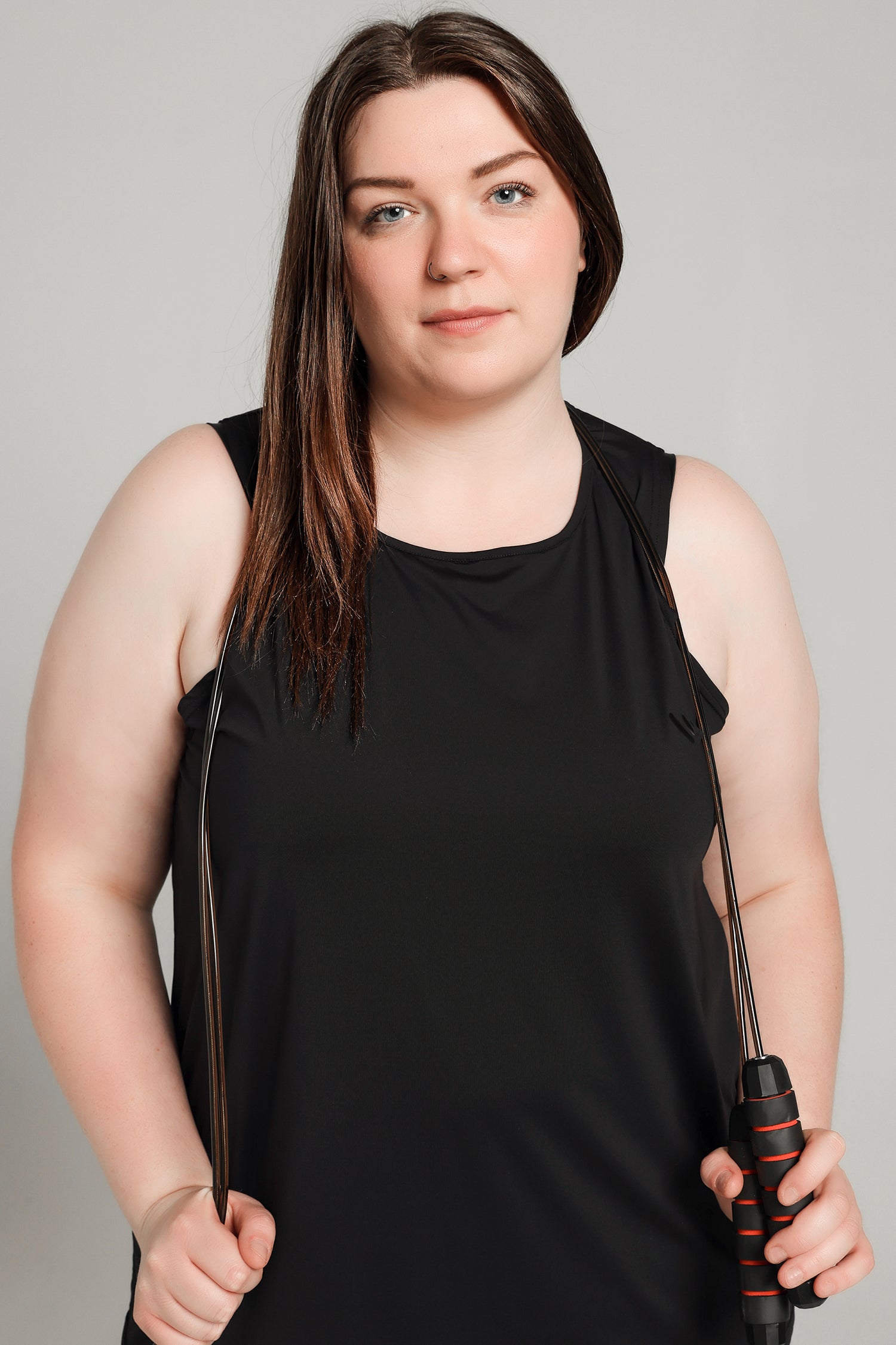 A feather-weight technical fabric with a loose fit and long length, perfect for a HIIT work out, pilates or spin class.