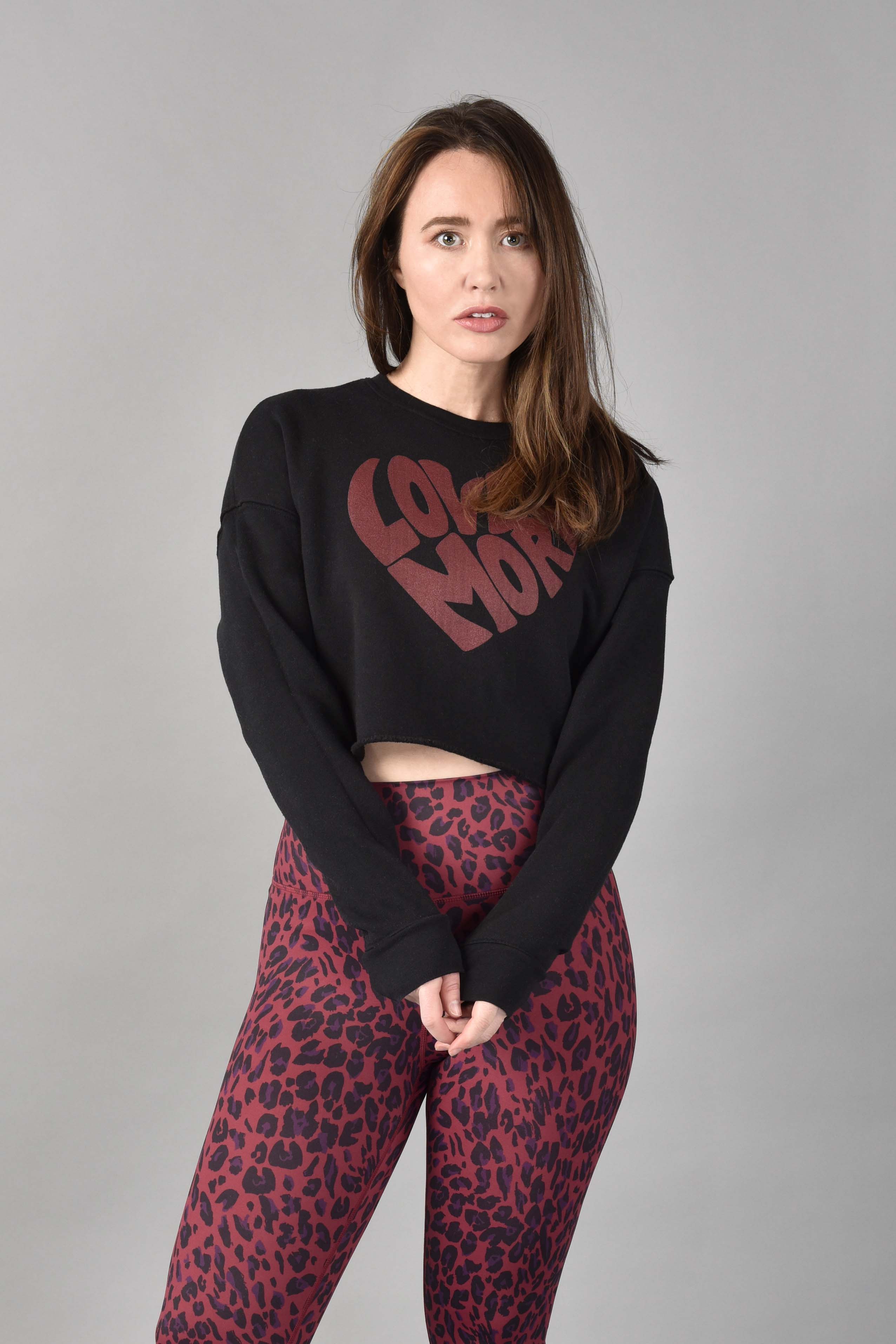 LOVE MORE is our signature and most popular graphic that also inspired the name Wear LOVE More. Featured in this contemporary cropped-cut sweatshirt that pairs with everything from jeans to leggings to that mini skirt you've been dying to wear a crop sweatshirt with since rewatching Empire Records for the 30th time.