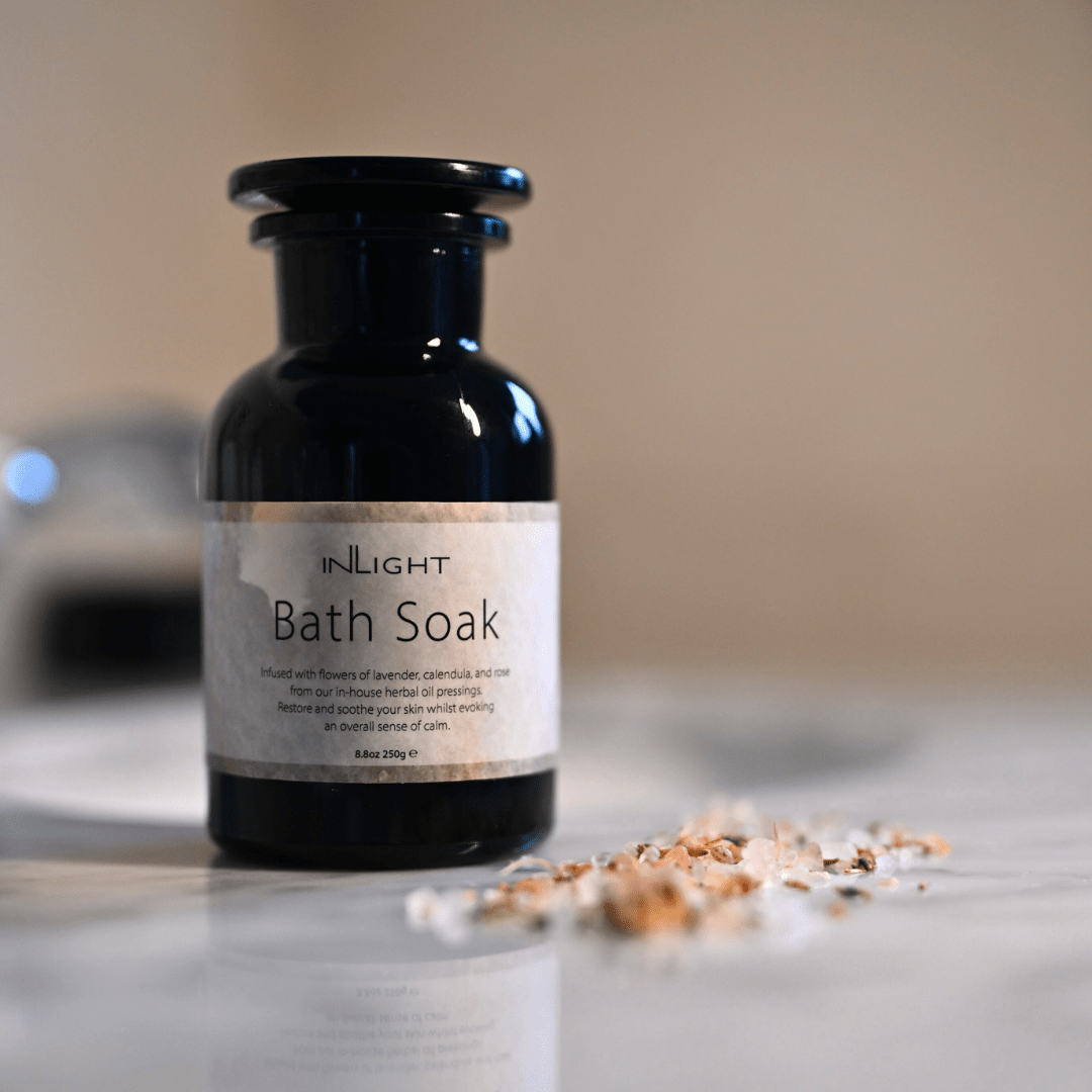 Indulge in the ultimate bathing ritual with our luxury Bath Soak, created using the organic herbal pressings of Inlight’s award-winning Night Balm. Infused with a touch of nourishing jojoba oil and a rich blend of restoring flowers, this soothing soak is designed to leave your skin radiant while calming the mind and easing stress.