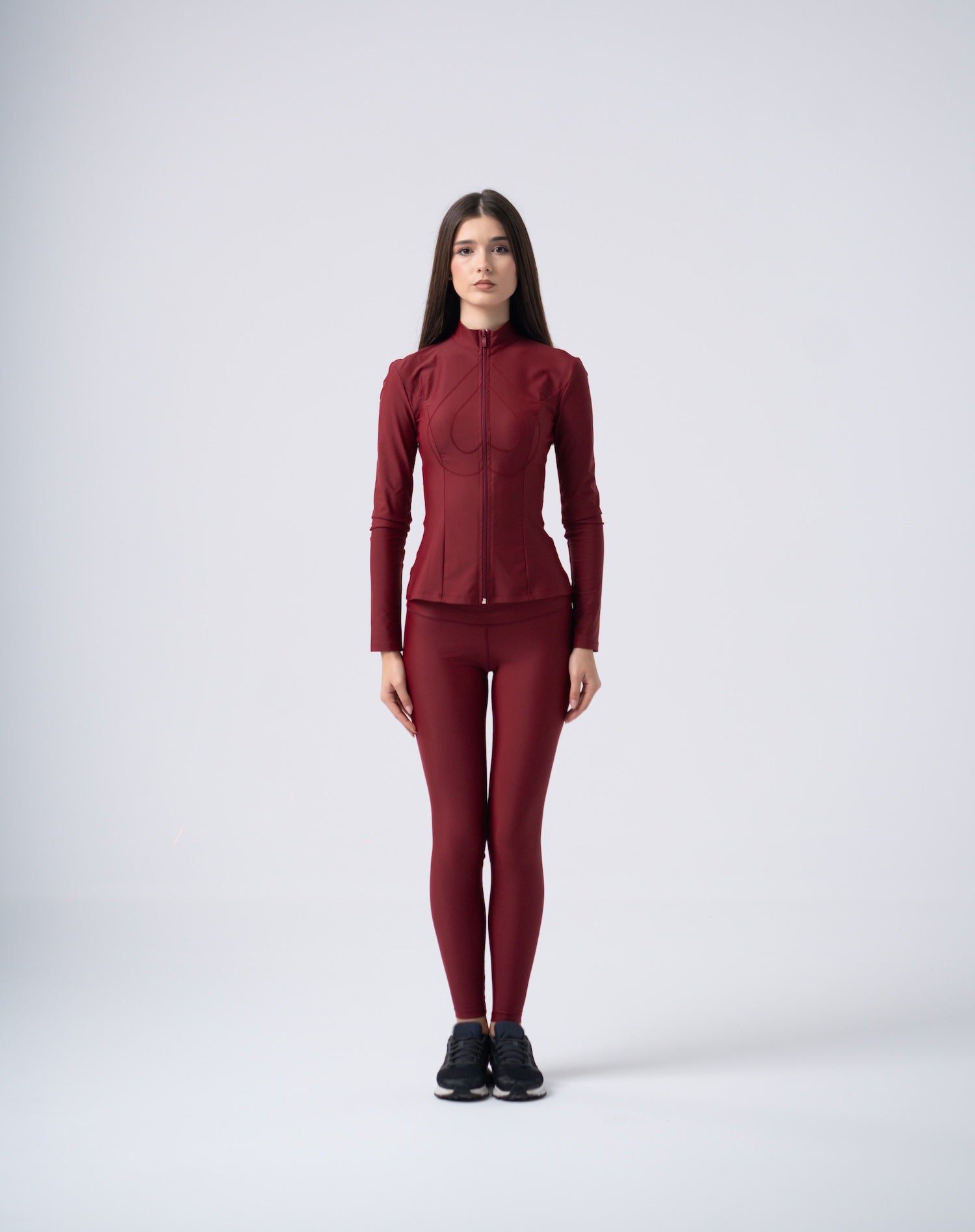 This set consists of a slim-fit jacket with an elegant design and a cut that follows the body's lines, combined with stretch. The stretchy material offers maximum freedom of movement, while the silhouette emphasizes strength and finesse. Ideal for physical activity or high-impact urban wear.