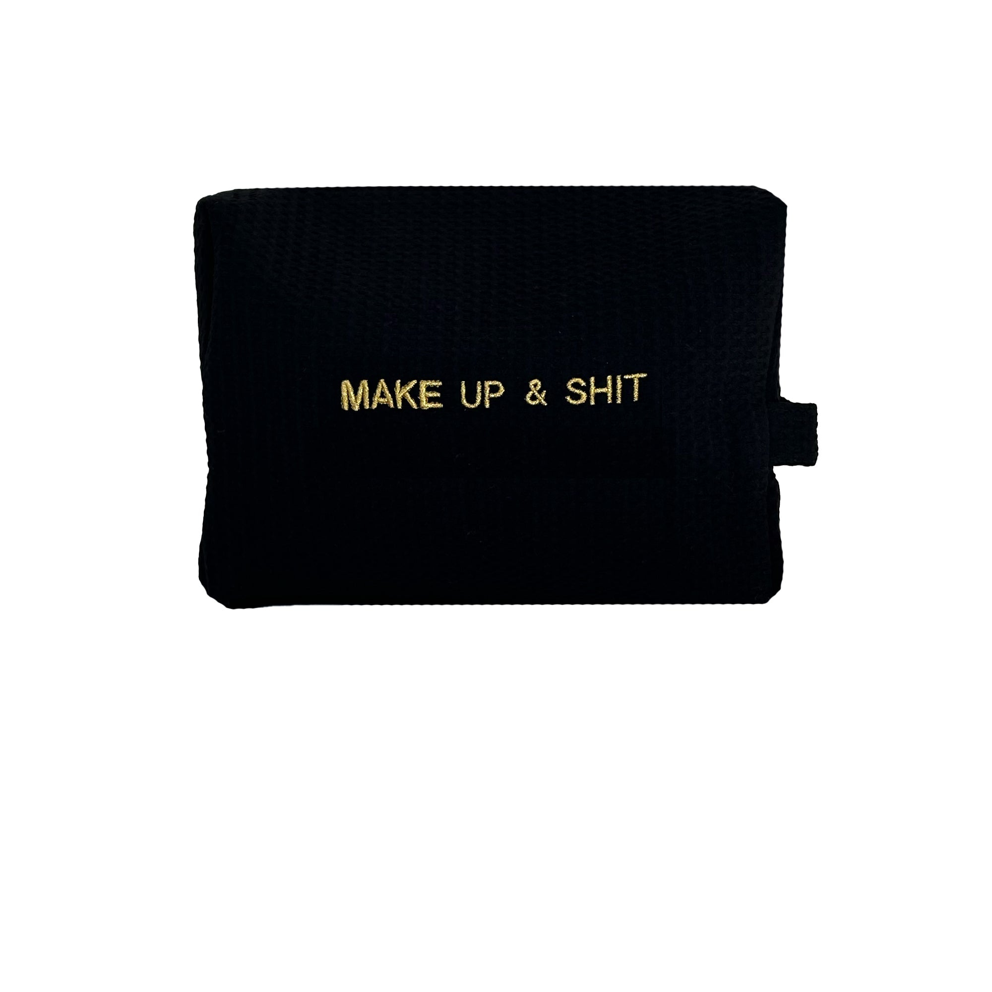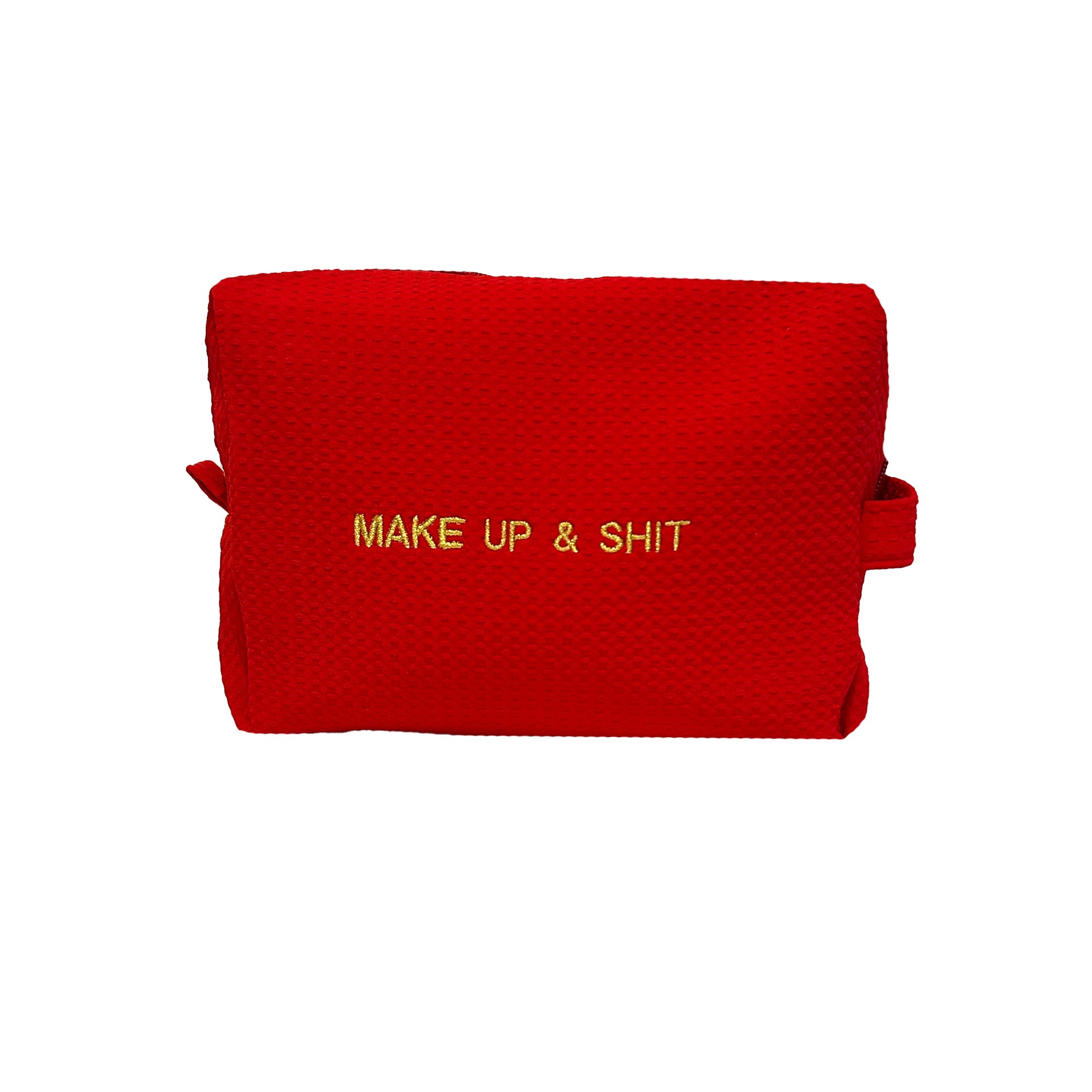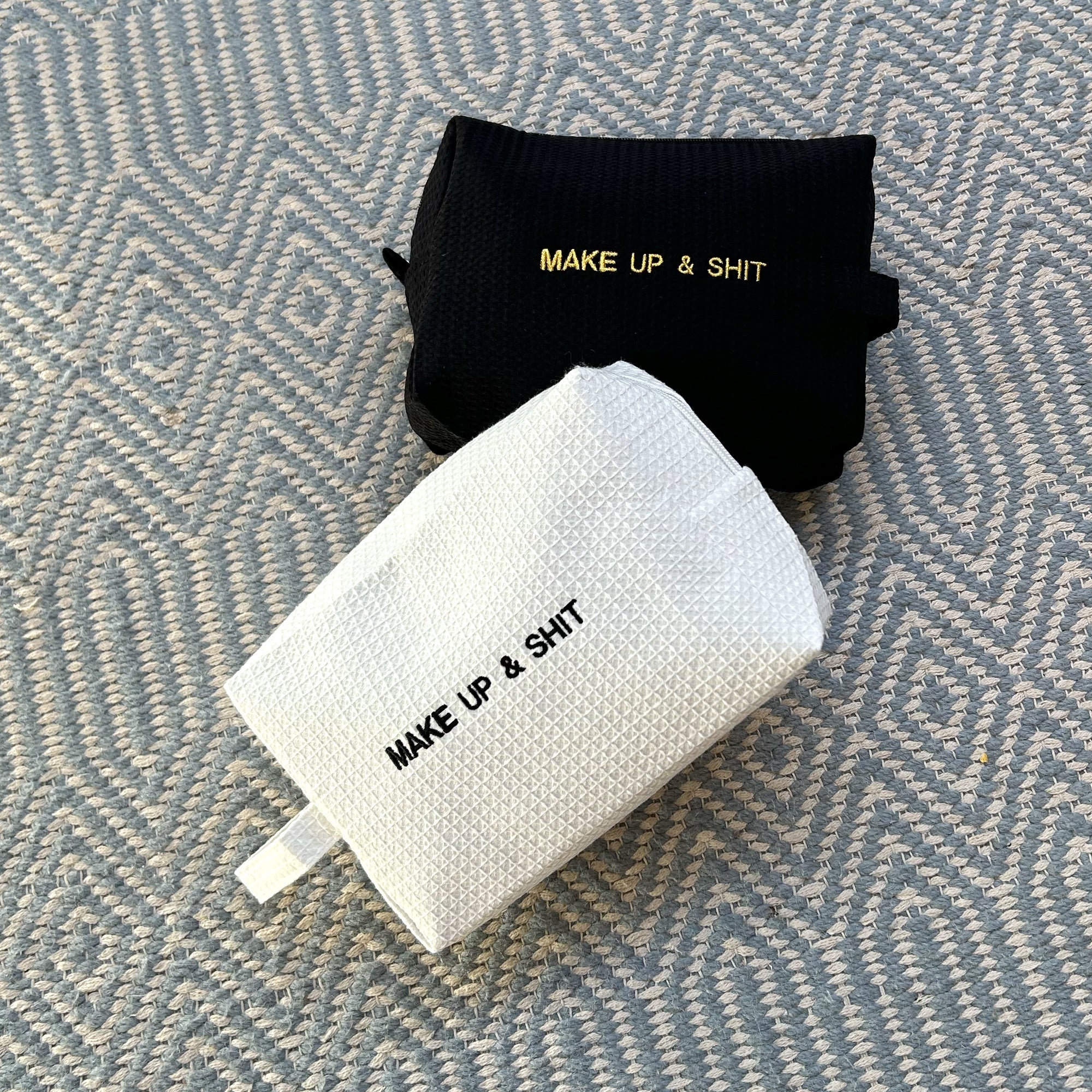 Embroidered Monogramed Waffle cosmetic bag stitched in our London based studio.