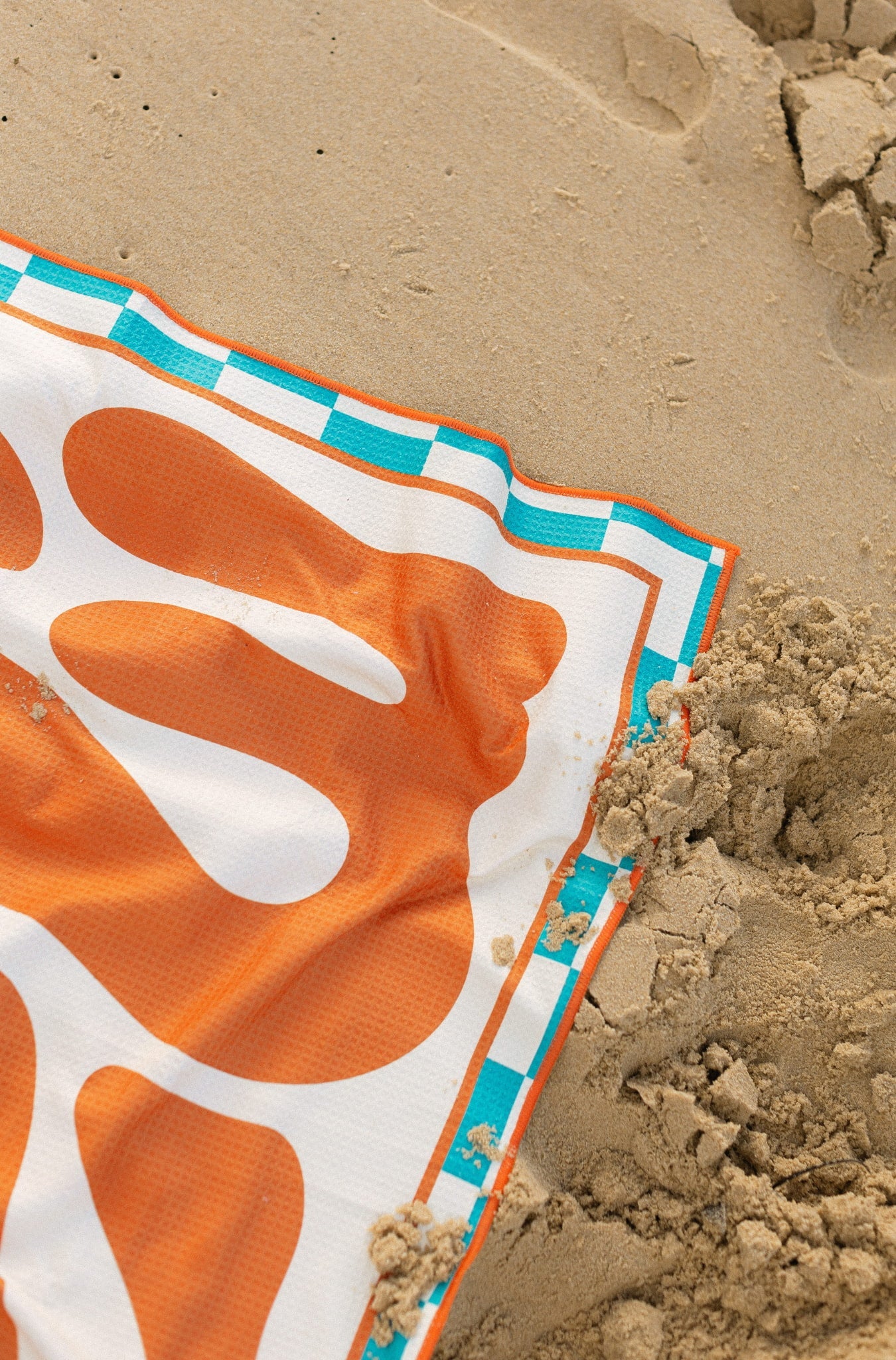 Feel the warmth of Mallorca with a towel inspired by its bold, sun-drenched landscapes. Rich terracotta, deep amber, and golden citrus tones echo the island’s rugged cliffs, sun-baked villages, and fiery Mediterranean sunsets. A nod to the iconic orange façades of Palma adds a touch of the island’s architectural charm, grounding the design in its vibrant heritage. This sand-free beach towel captures the essence of Mallorca’s summer, where warm hues meet crystal-clear waters in perfect coastal harmony.