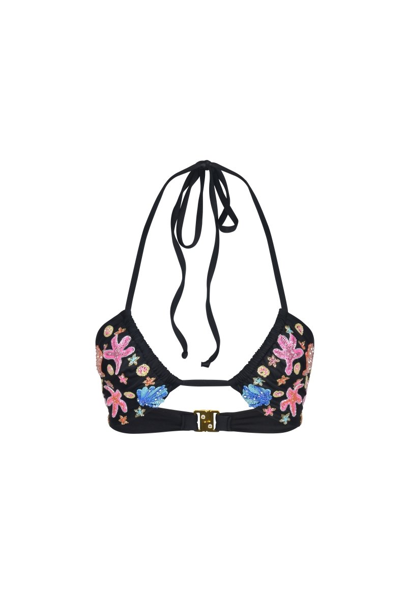 Experience island elegance with the Marissa Bikini. Showcasing an exclusive Oceanus print inspired by the lush tropics of Bali, this luxe piece is crafted from eco-friendly Italian metallic fabric and finished with exquisite hand embroidery. The classic silhouette features a supportive shape and a secure clasp closure at the back, blending comfort with high-octane glamour. Designed for those who seek both sophistication and a touch of wanderlust.