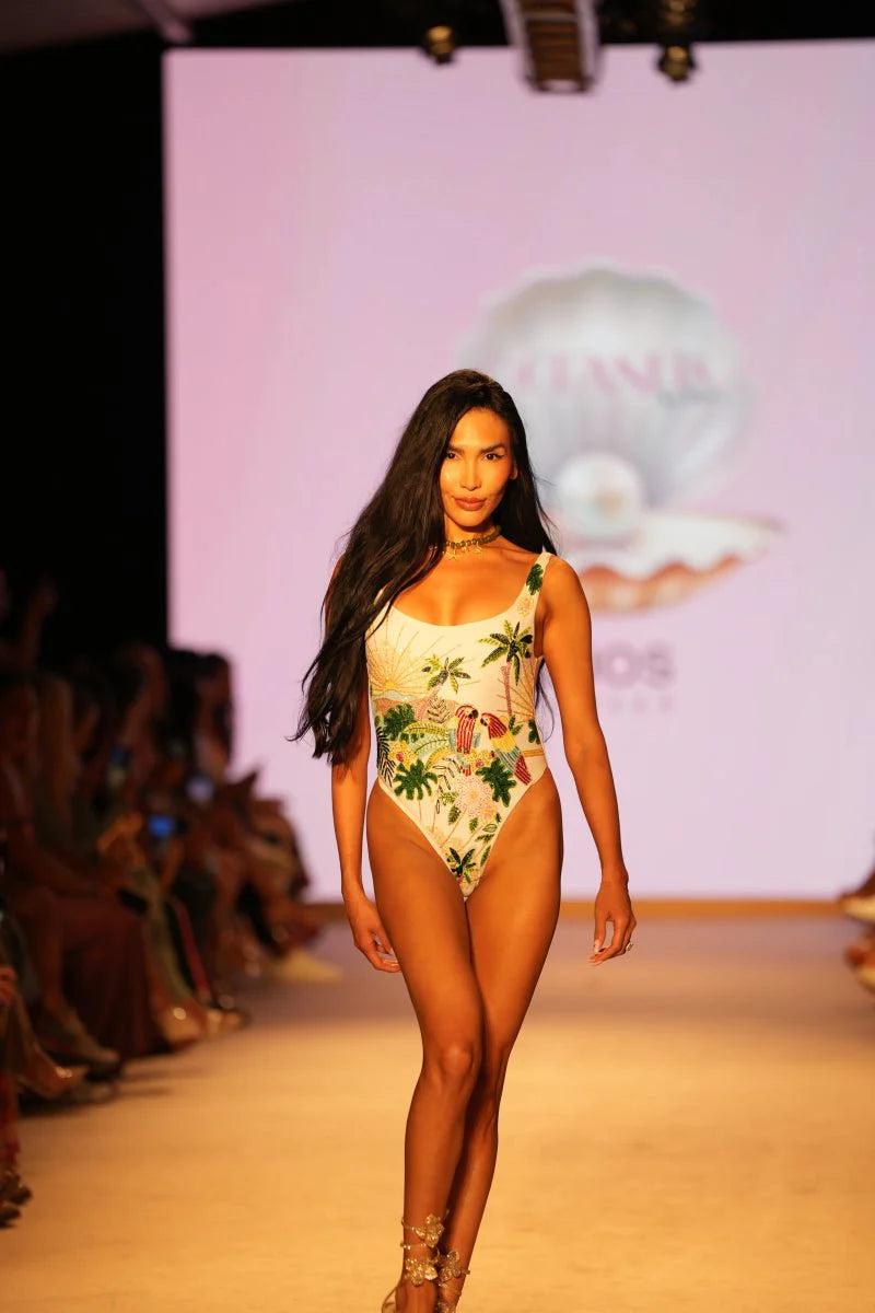 The Maya Swimsuit is a new addition to our SS24 collection. This piece features hand-embroidered tropical elements on a Blush Pink base.