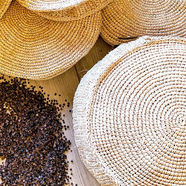 Meditation cushion handmade in Madagascar and filled with organic UK-grown buckwheat hulls, that can be removed as needed for easy height adjustments.
