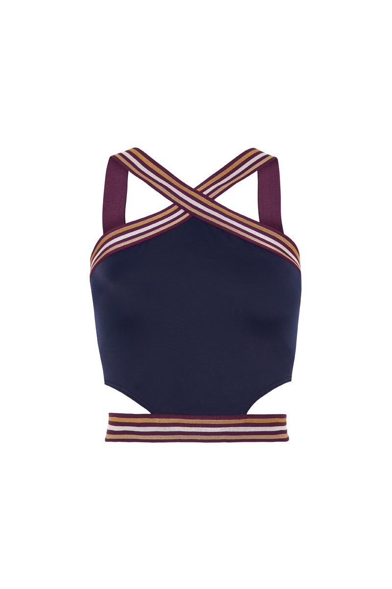 Inspired by the elegance and innovation of the 1956 Melbourne Olympics, the Melbourne 1956 Crop Top combines style, support, and comfort. Featuring our signature crossover elastic at the front, paired with small side cut-outs for a modern touch, this crop top is designed to elevate your activewear collection. The tripled-lined front with a built-in shelf bra ensures premium support, while the double-lined back provides additional comfort and structure.