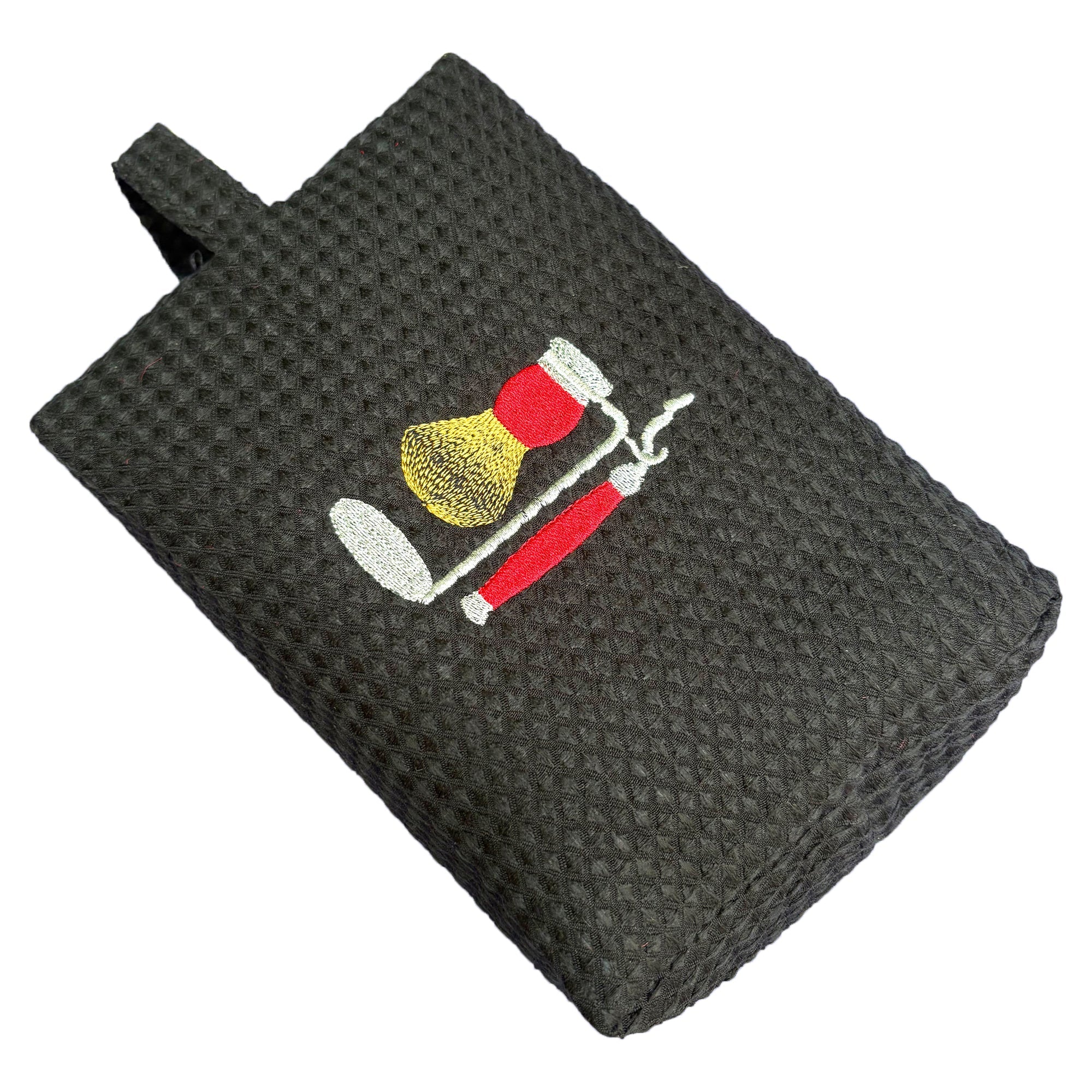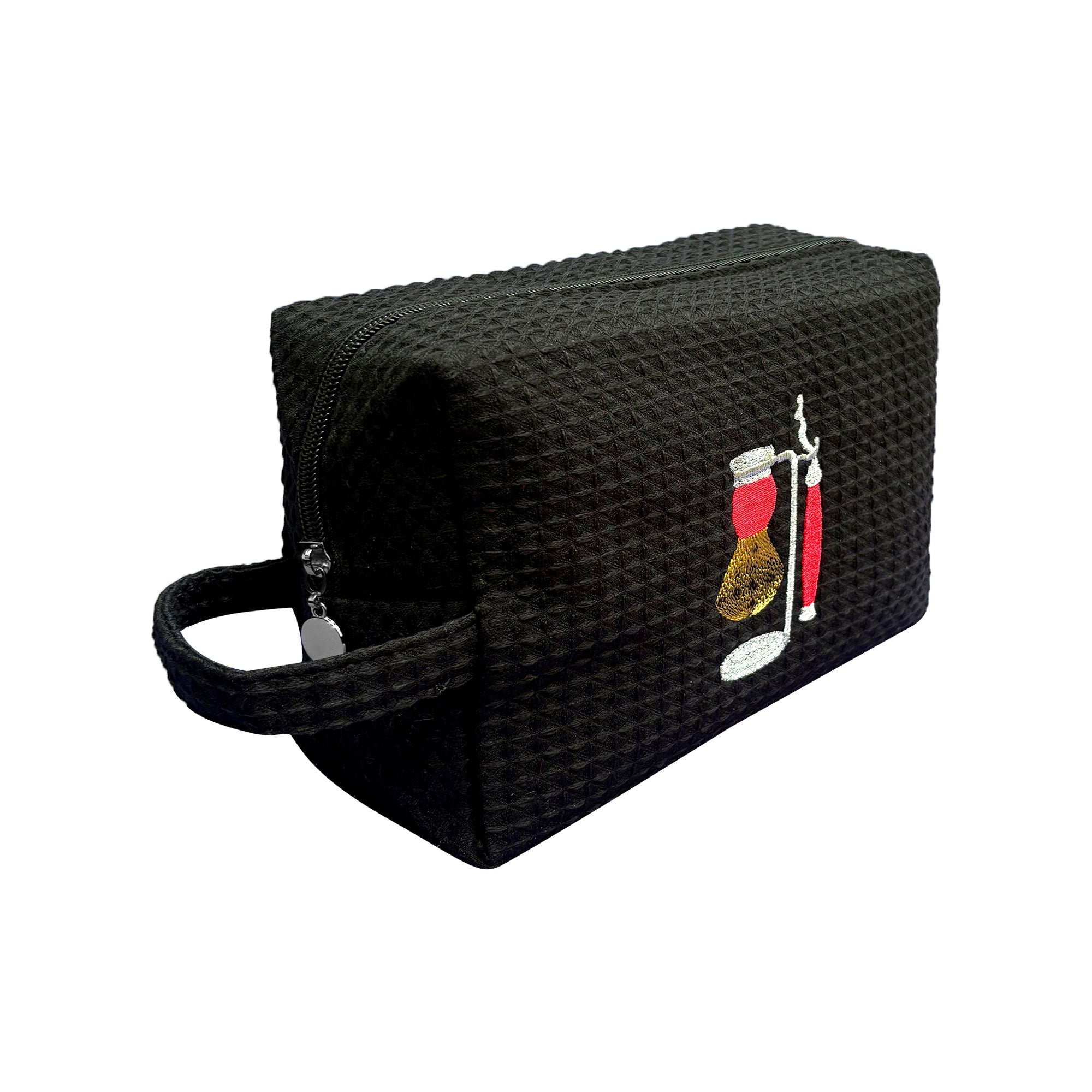 Fathers Day, the perfect gift, with a bright red waterproof lining. This embroidered pouch is perfect for storing his favorite essentials and everyday must-haves in style. Crafted with gold embroidery, it's the ideal gift for fathers day.