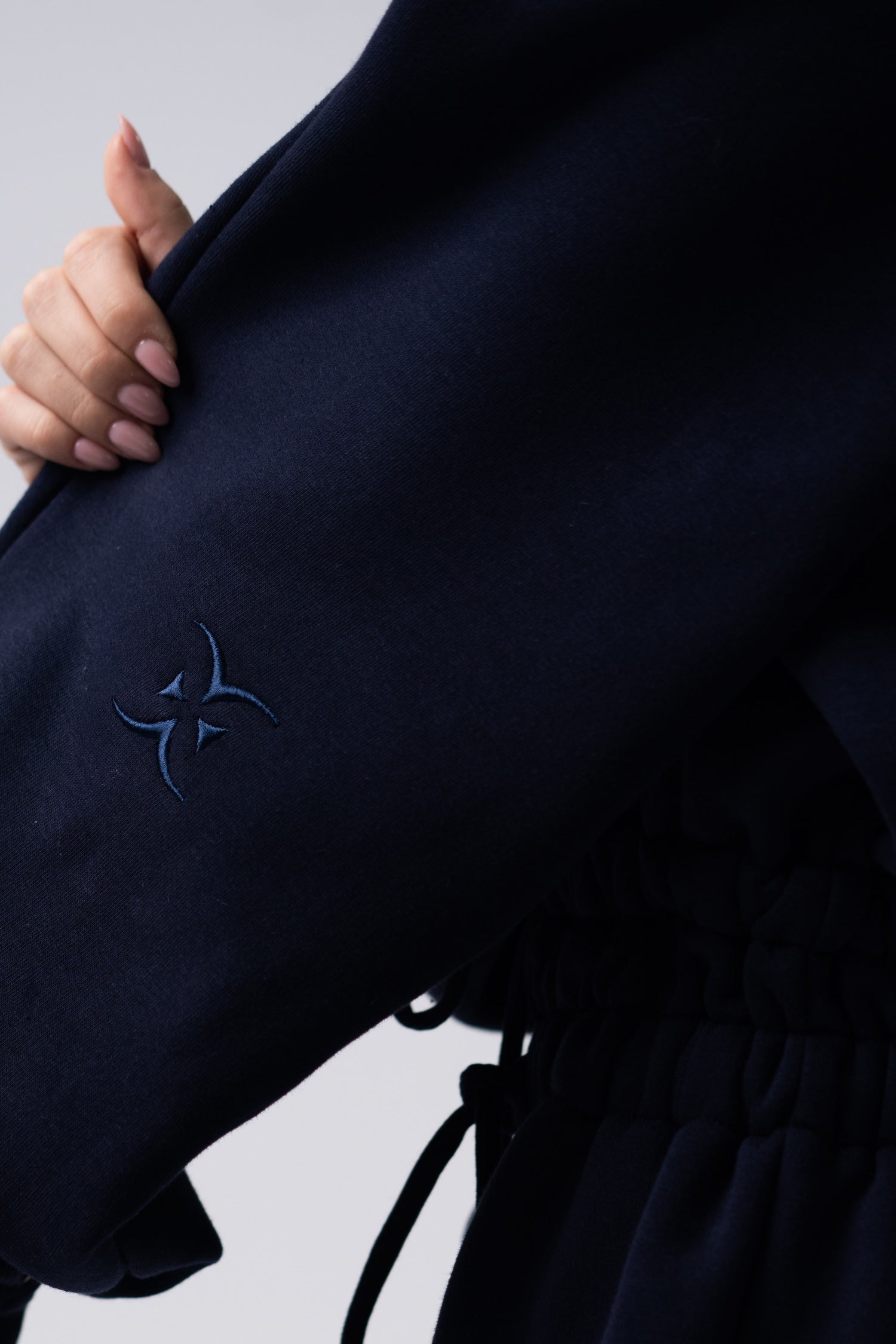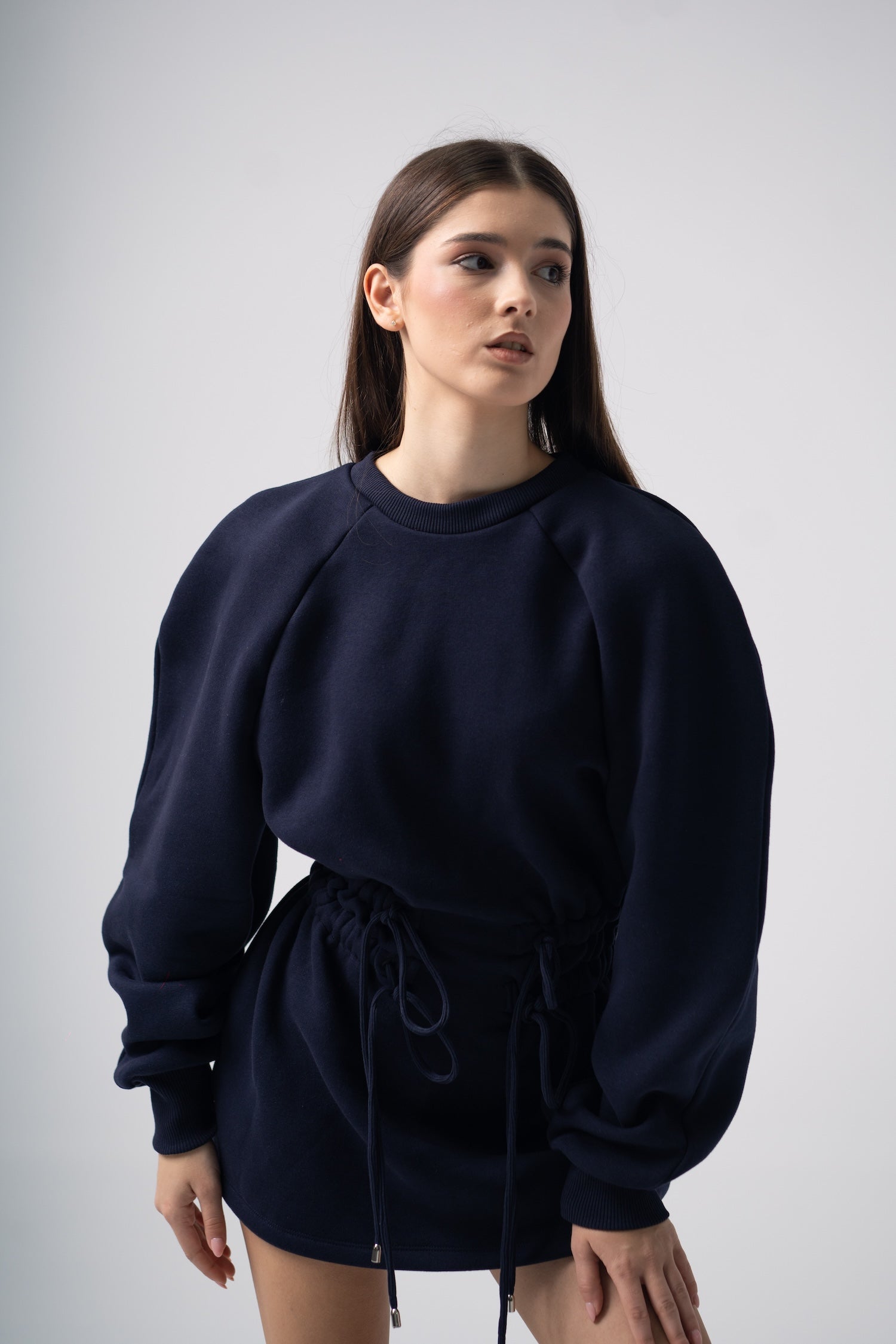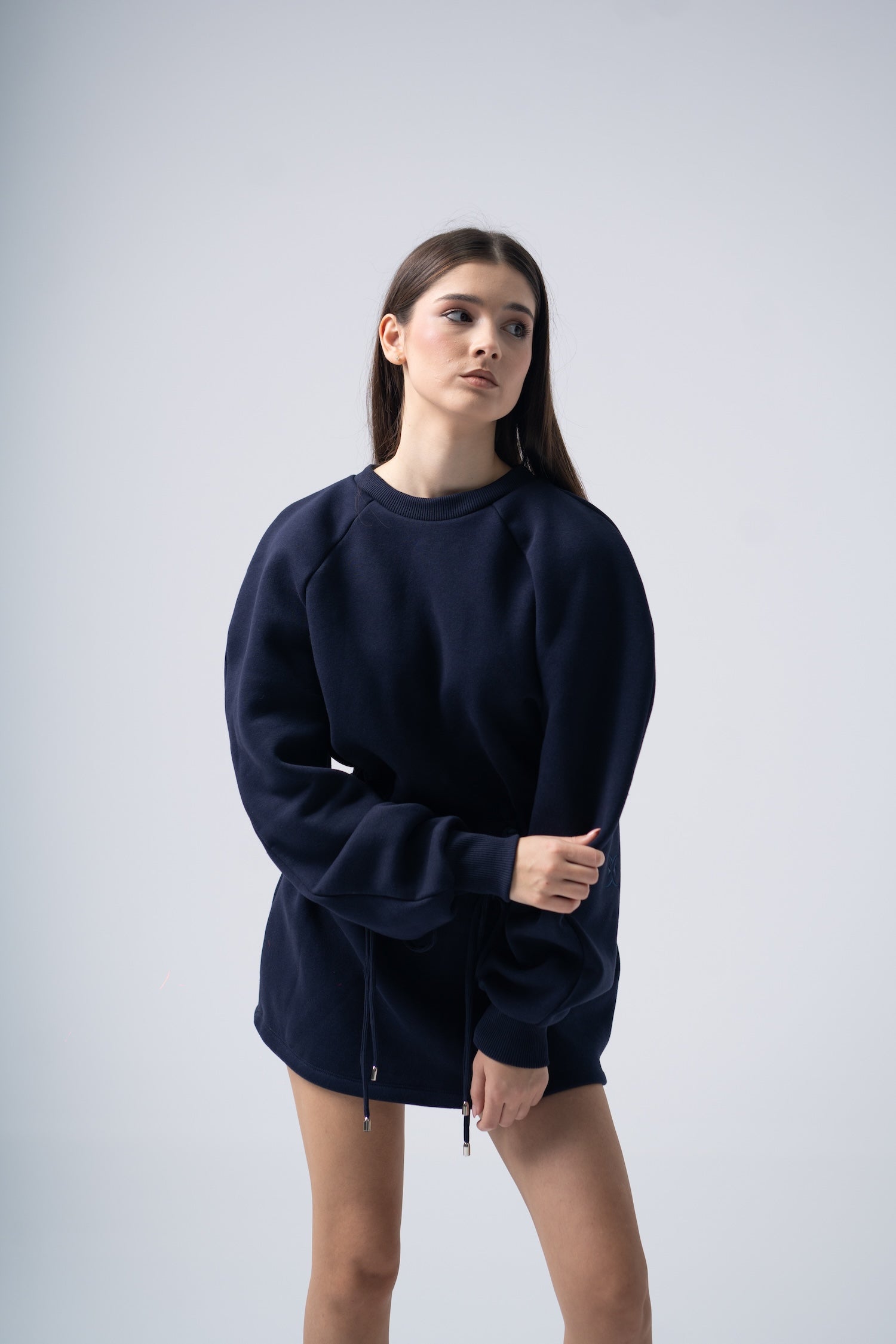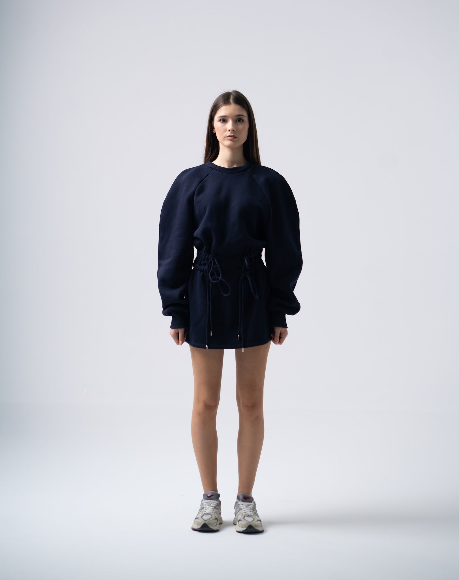 This sporty mini dress features a relaxed top part with a cinched, adjustable waistband that defines the silhouette. Made from 95% cotton and 5% elastane, it’s soft, comfortable, and perfect for everyday wear. A balanced mix of ease and urban style.